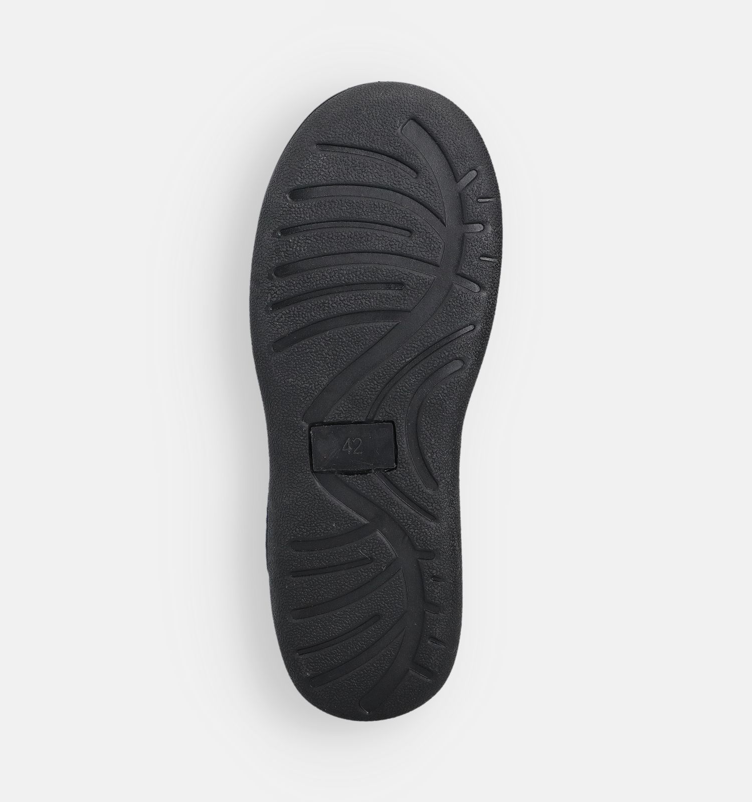 De semi-flexibele buitenzolen van deze herenpantoffels van Milo & Mila volgen de bewegingen van jouw voeten: op vlak van ergonomisch comfort zitten deze dichte pantoffels dus zeker goed! Dit gesloten model houdt je voeten warm, van je tenen tot de enkels. Met deze blauwe sloffen kom je helemaal tot rust.