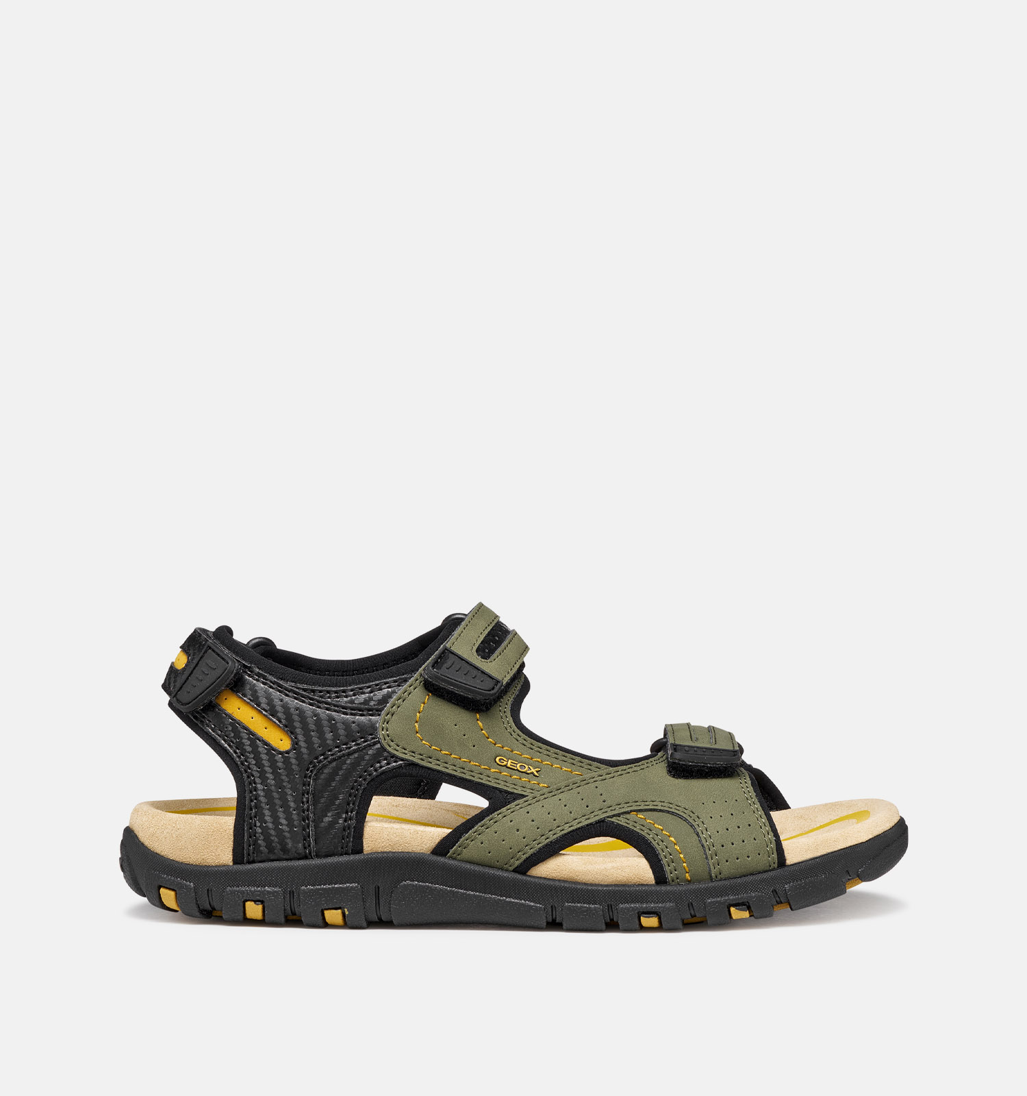 Geox is één van de favoriete schoenenmerken van alle heren die zowel comfort als een moderne look belangrijk vinden. En wij snappen honderd procent waarom! Deze groene sandalen voor heren hebben de gepatenteerde Geox-zolen, waardoor zweet wordt afgevoerd via de microgaatjes in de buitenzolen. Zo blijven jouw voeten droog, de hele dag lang. Door deze ademende herensandalen van Geox ervaar je ultiem comfort!