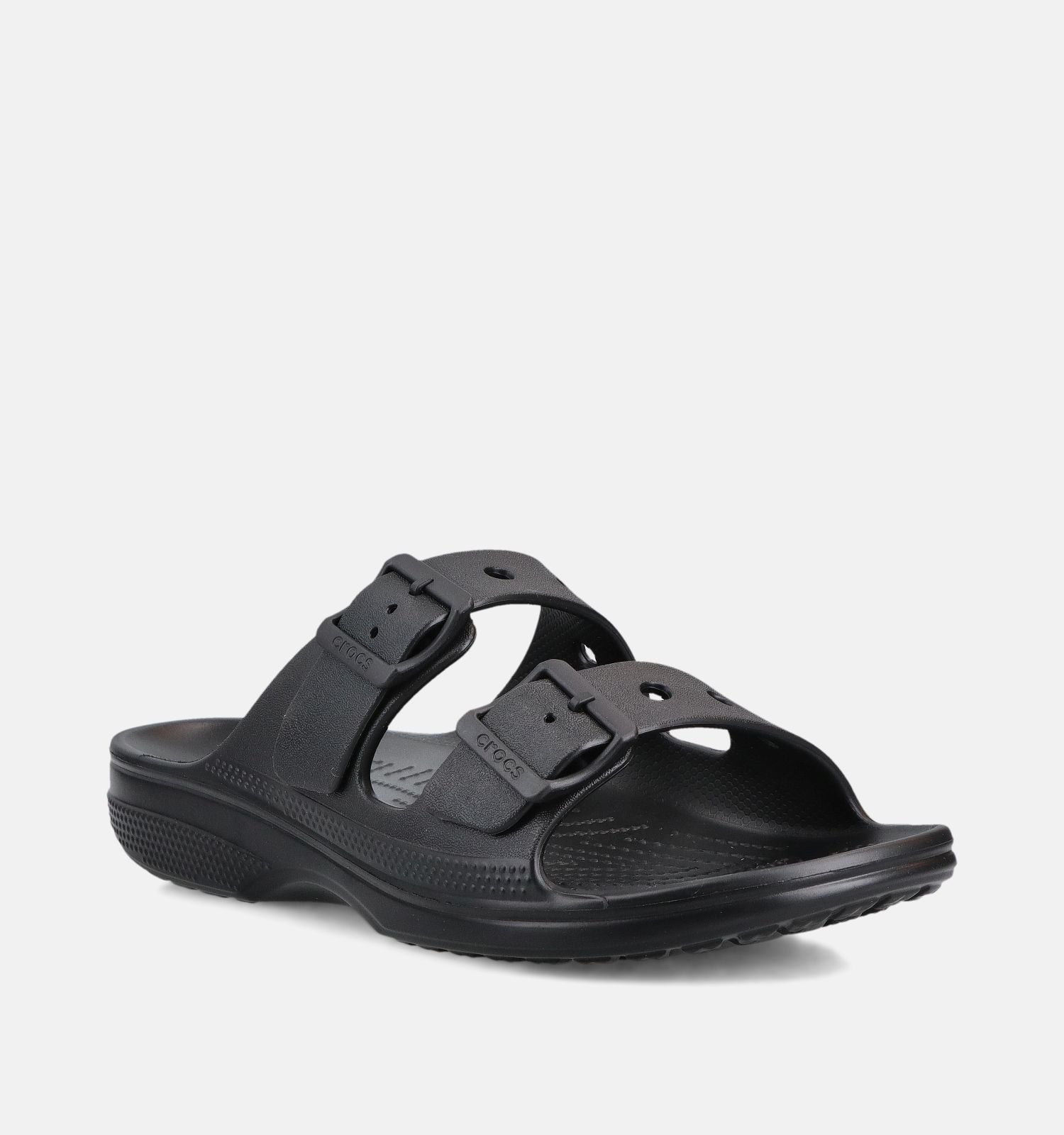 Dit Crocs model is comfortabel en eigentijds. Dit topmerk (her)kent iedereen als een icoon in de herenschoenenwereld. Deze zwarte slippers van Crocs hebben een antibacterieel en ondersteunend voetbed dat afgewerkt is met kunststof.