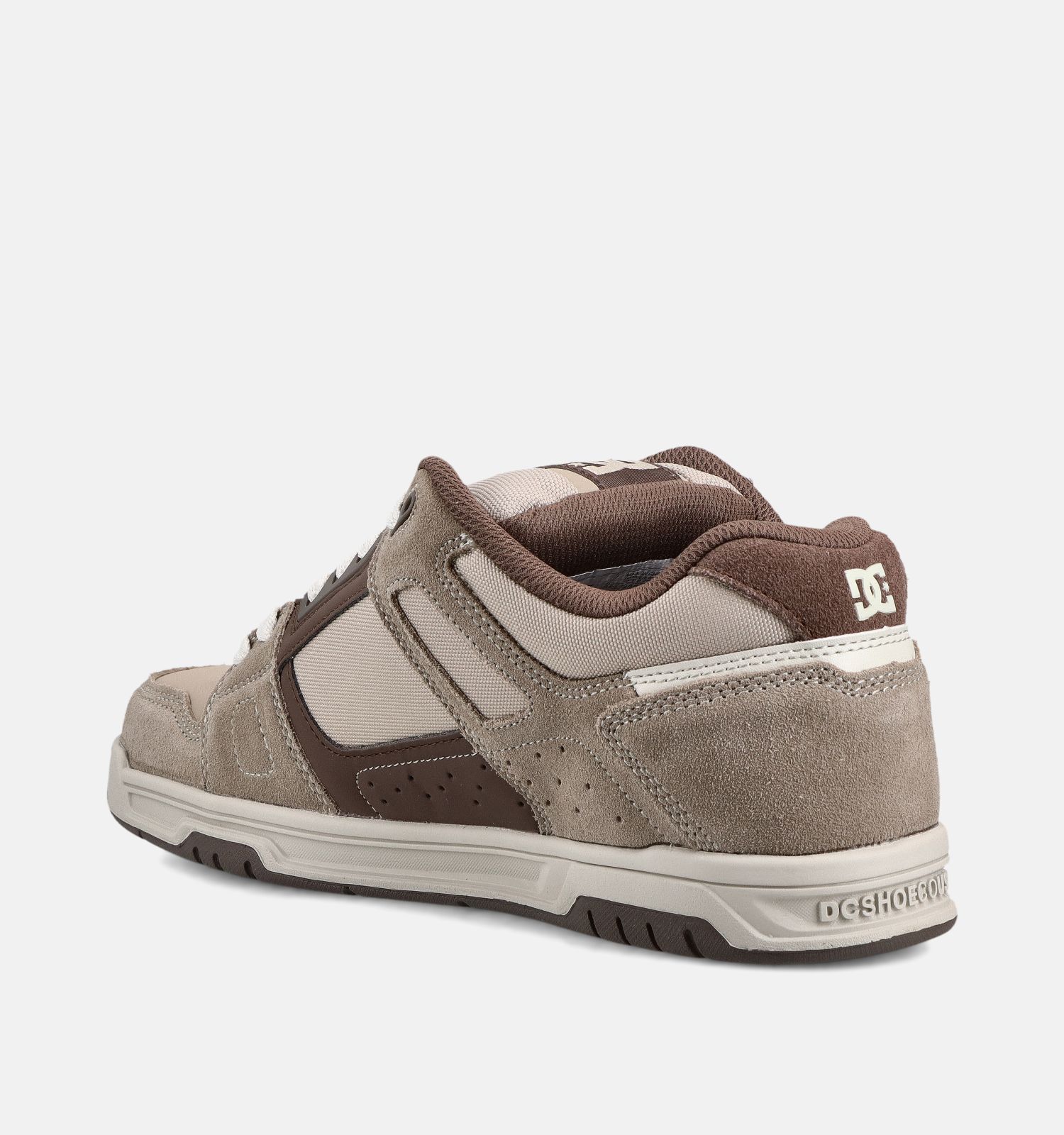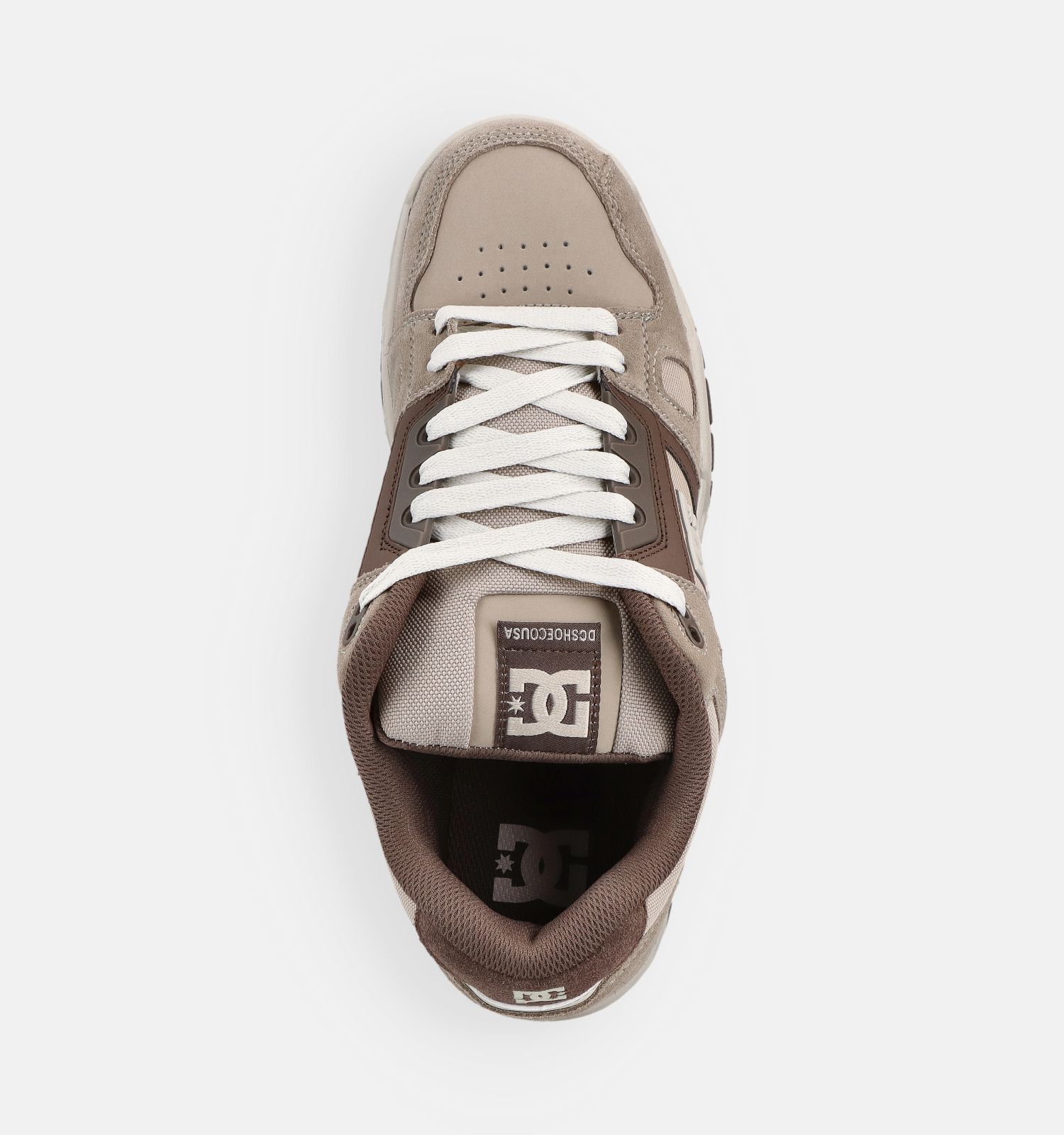Op het vlak comfort scoren deze beige sneakers voor heren hoog. De semi-soepele en slijtvaste zolen laten de voeten mooi afrollen tijdens het stappen. Dat verhoogt het stapcomfort aanzienlijk. De pasvorm van deze DC Shoes sneakers sluit mooi op herenvoeten aan: er is voldoende teenruimte, de voetenboog wordt goed ondersteund en het verstevigde hielstuk biedt extra stabiliteit. De schoenbreedte van dit beige model met vetersluiting is F - Normale voet.