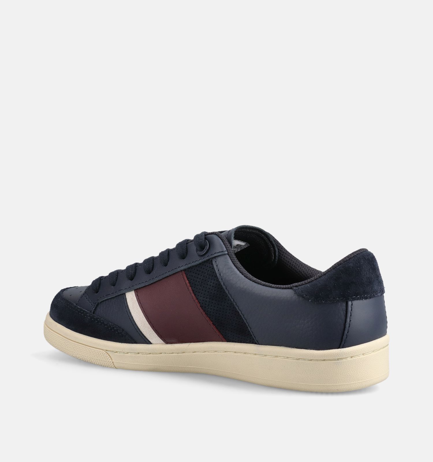 Laat ons eerst eens kijken naar alle comforteigenschappen van deze Fred Perry herenschoenen. De semi-flexibele zolen ondersteunen de natuurlijke voetafwikkeling en zijn afgewerkt met een kenmerkend antislipreliëf. De blauwe veterschoenen hebben achteraan een verstevigde hielkap. Dit zorgt voor extra stabiliteit én meer zelfvertrouwen tijdens het stappen. Je voeten blijven stevig in de schoenen zitten!