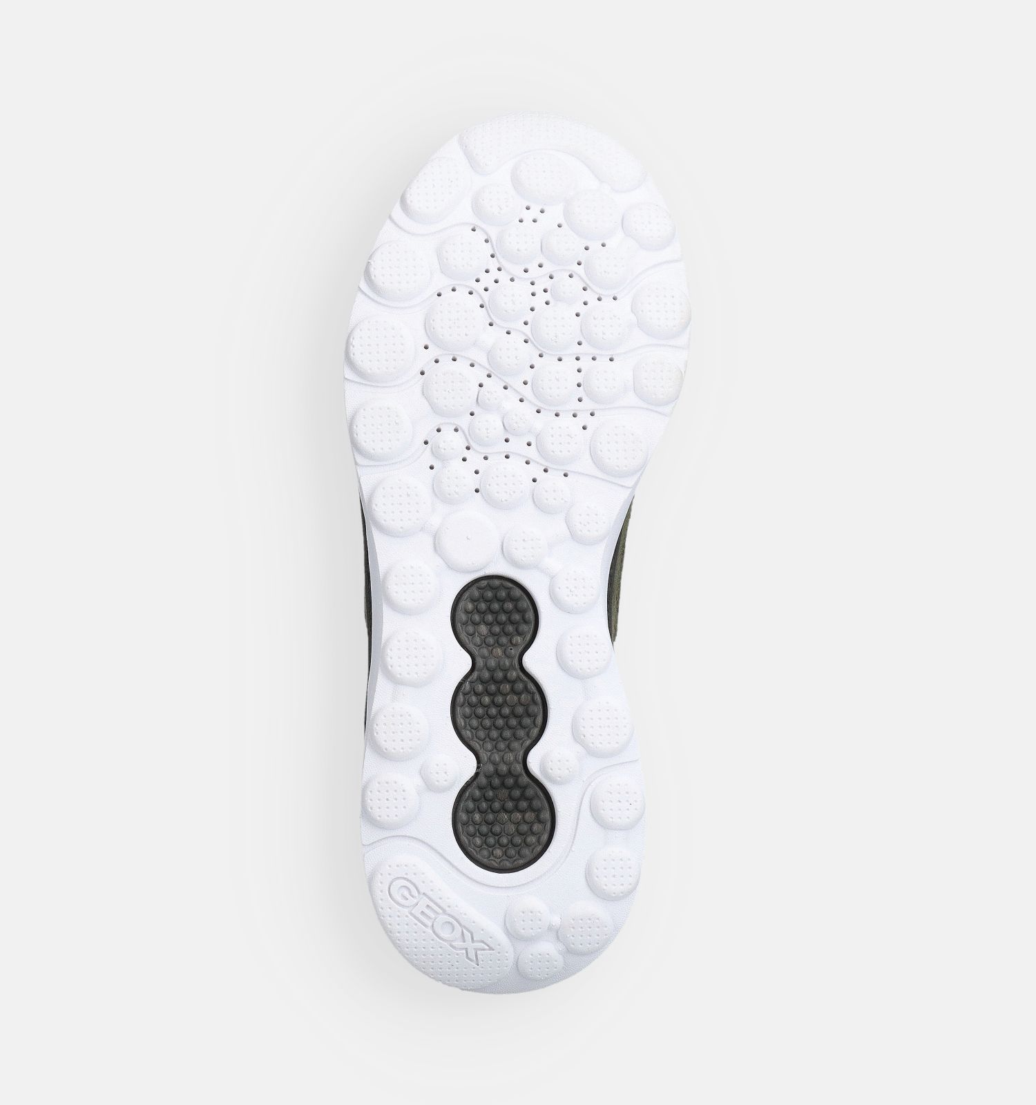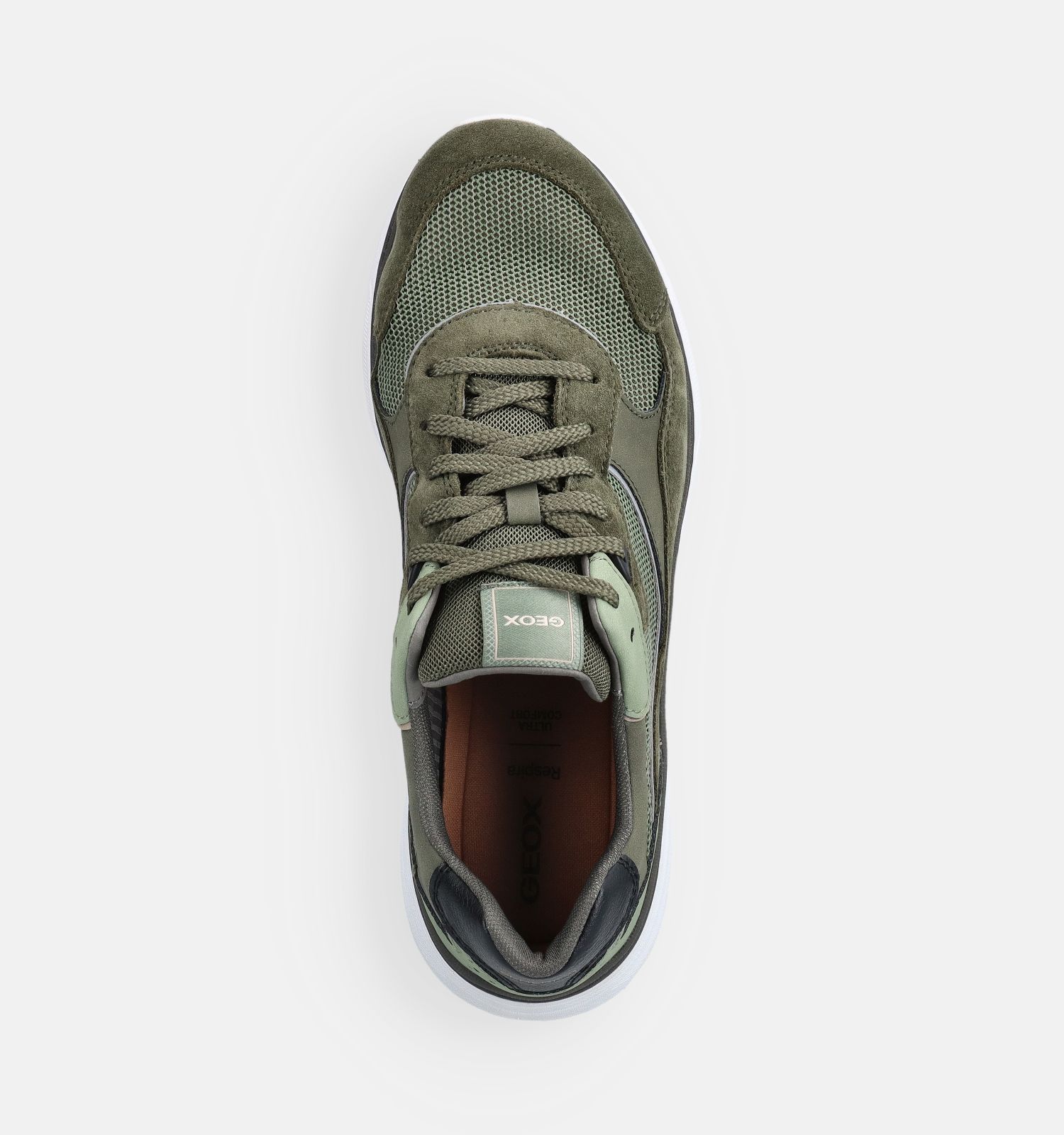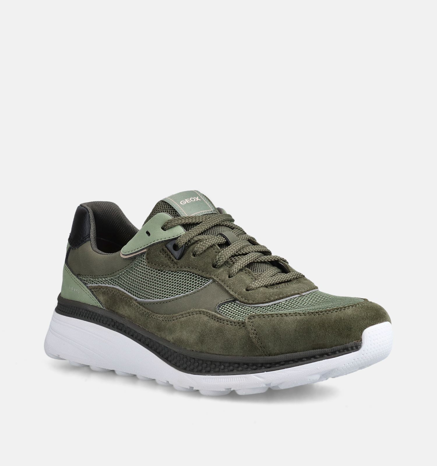 Deze groene sneakers maken deel uit van de nieuwe Spherica collectie van Geox! Geox Spherica herenschoenen zijn een echte innovatie in de schoenenwereld. Deze sneakers zijn ademend, ultralicht en hebben drukverlagende binnenzolen. De unieke pasvorm zorgt voor immens stapcomfort, dat verschil zal je voelbaar merken. Uiteraard hebben deze herensneakers ook de gepatenteerde Geox-zolen, waardoor zweet wordt afgevoerd via microgaatjes in de buitenzolen. Dat houdt herenvoeten de hele dag lang droog. Ervaar comfort zoals nooit te voren, met deze Geox Spherica sneakers voor heren!