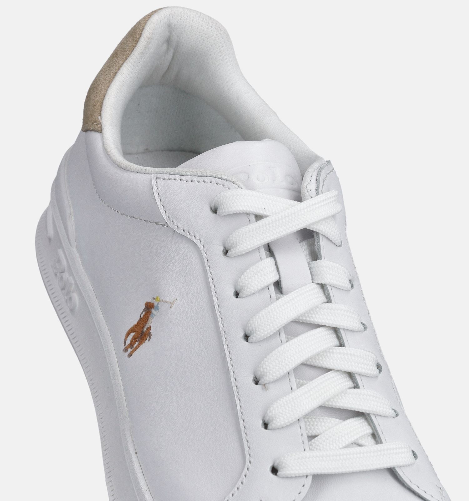 Laat ons eerst eens kijken naar alle comforteigenschappen van deze Polo Ralph Lauren herenschoenen. De semi-flexibele zolen ondersteunen de natuurlijke voetafwikkeling en zijn afgewerkt met een kenmerkend antislipreliëf. De witte veterschoenen hebben achteraan een verstevigde hielkap. Dit zorgt voor extra stabiliteit én meer zelfvertrouwen tijdens het stappen. Je voeten blijven stevig in de schoenen zitten!
