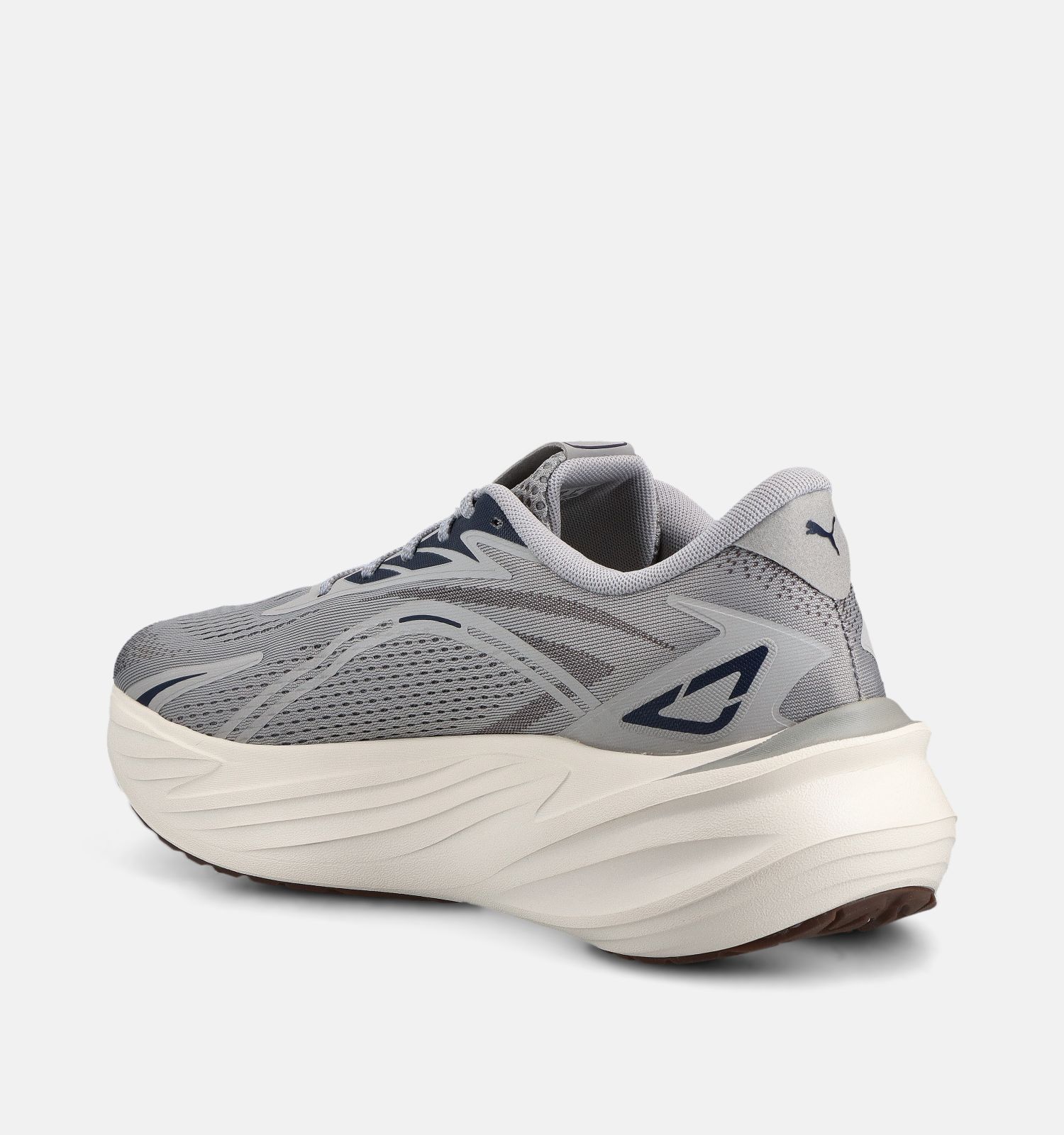 Op het vlak comfort scoren deze zilveren sneakers voor heren hoog. De semi-soepele en slijtvaste zolen laten de voeten mooi afrollen tijdens het stappen. Dat verhoogt het stapcomfort aanzienlijk. De pasvorm van deze Puma sneakers sluit mooi op herenvoeten aan: er is voldoende teenruimte, de voetenboog wordt goed ondersteund en het verstevigde hielstuk biedt extra stabiliteit. De schoenbreedte van dit zilveren model met vetersluiting is F - Normale voet.