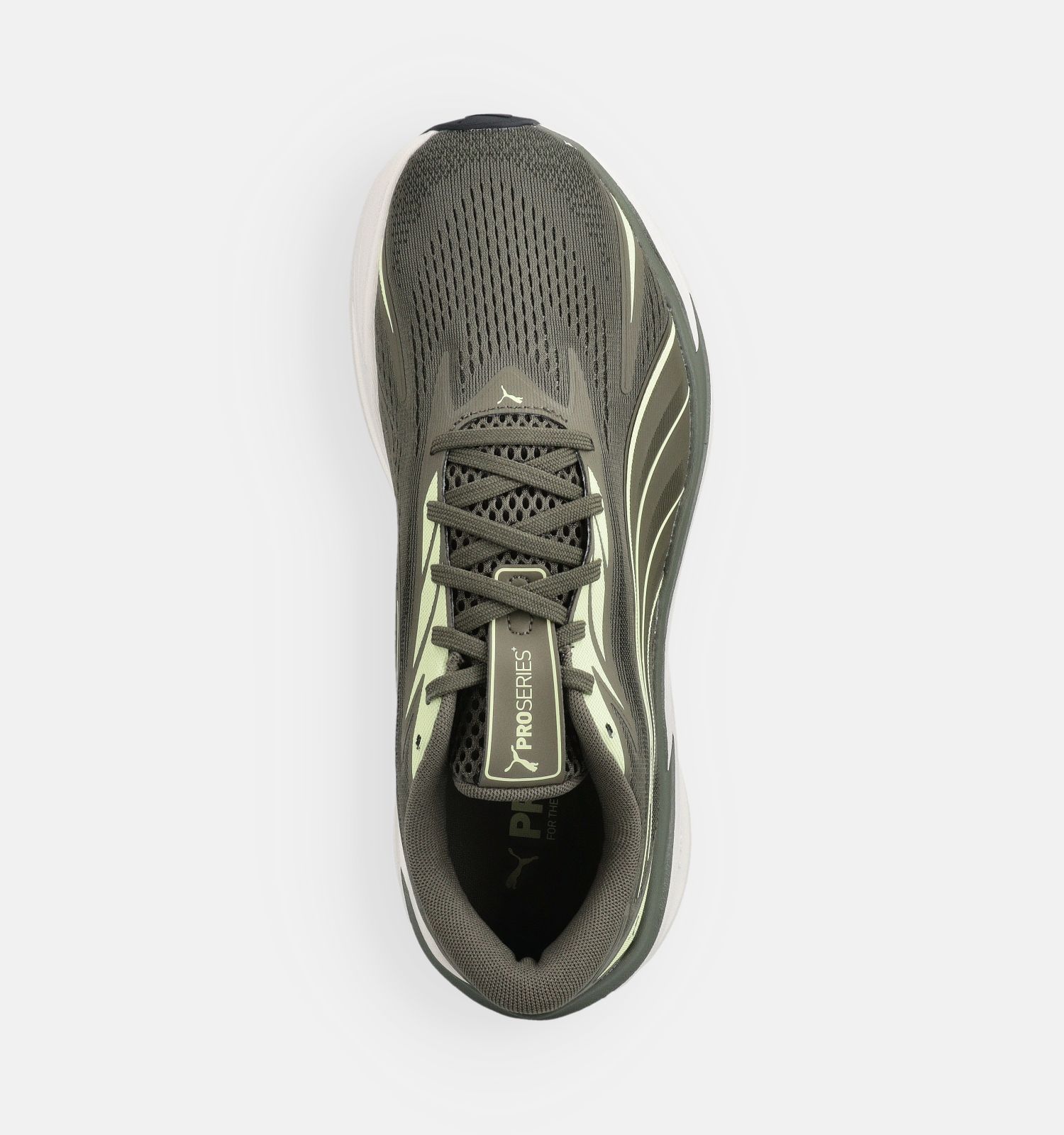 Op het vlak comfort scoren deze groene sneakers voor heren hoog. De semi-soepele en slijtvaste zolen laten de voeten mooi afrollen tijdens het stappen. Dat verhoogt het stapcomfort aanzienlijk. De pasvorm van deze Puma sneakers sluit mooi op herenvoeten aan: er is voldoende teenruimte, de voetenboog wordt goed ondersteund en het verstevigde hielstuk biedt extra stabiliteit. De schoenbreedte van dit groene model met vetersluiting is F - Normale voet.