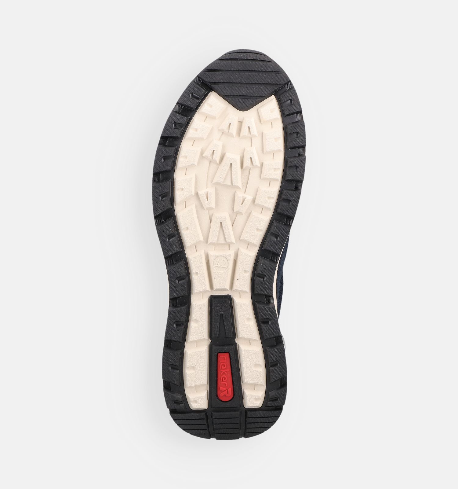 Deze sneakers voor heren zijn vervaardigd uit extra sterk stof, met comfortabel stof aan de binnenkant. Deze kwalitatieve materialen zijn licht qua gewicht, een antidotum tegen dat herkenbare gevoel dat jouw voeten na een tijd zwaar beginnen aan te voelen. Deze blauwe heren sneakers van Rieker hebben een elastieksluiting.