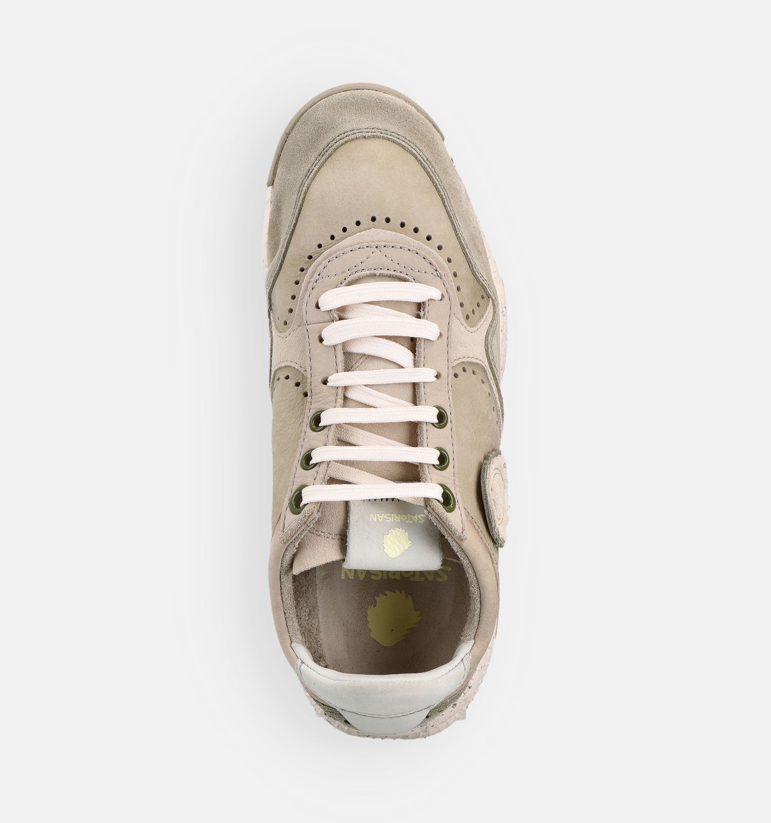 Een tip: pas deze groene Satorisan sneakers op het einde van de dag. Herenvoeten zwellen namelijk in de loop van de dag. Als deze Satorisan herensneakers 's avonds perfect passen, dan ben je honderd procent zeker dat je de juiste schoenmaat gekozen hebt!