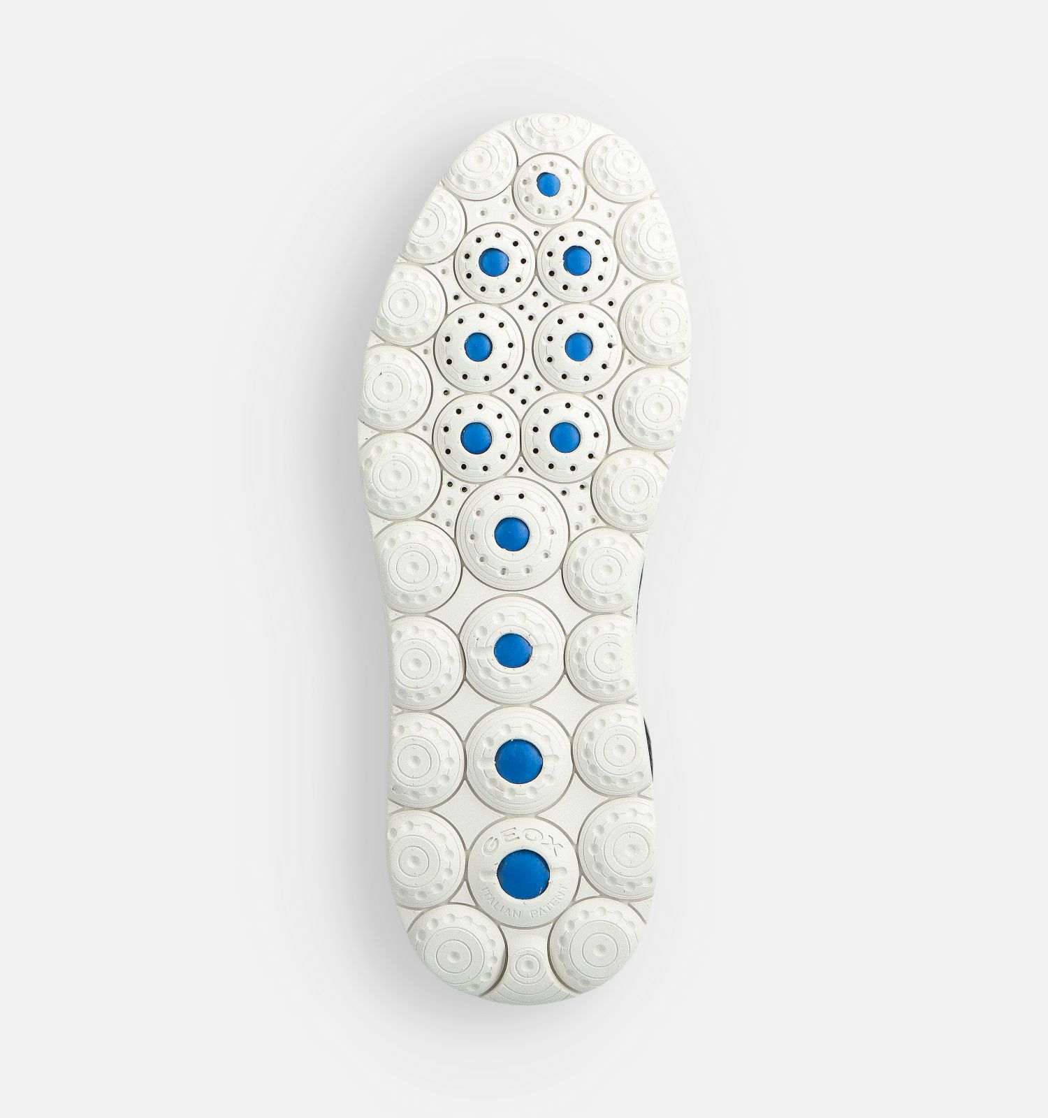 Geox is één van de favoriete schoenenmerken van alle heren die zowel comfort als een moderne look belangrijk vinden. En wij snappen honderd procent waarom! Deze blauwe sneakers voor heren hebben de gepatenteerde Geox-zolen, waardoor zweet wordt afgevoerd via de microgaatjes in de buitenzolen. Zo blijven jouw voeten droog, de hele dag lang. Door deze ademende herensneakers van Geox ervaar je ultiem comfort!