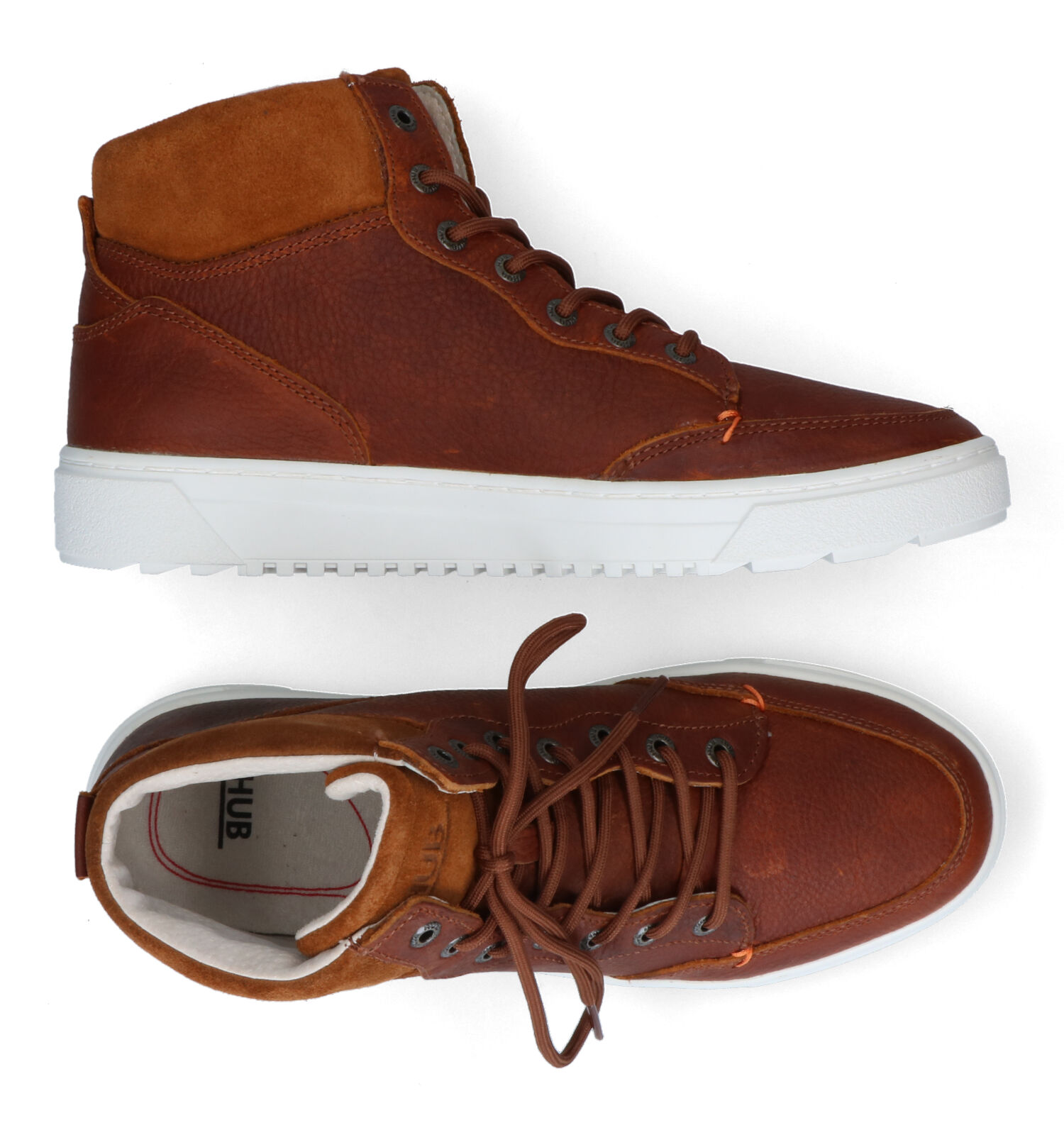 Deze veterlaars van Hub is vervaardigd uit leer en binnenin afgewerkt in leer.