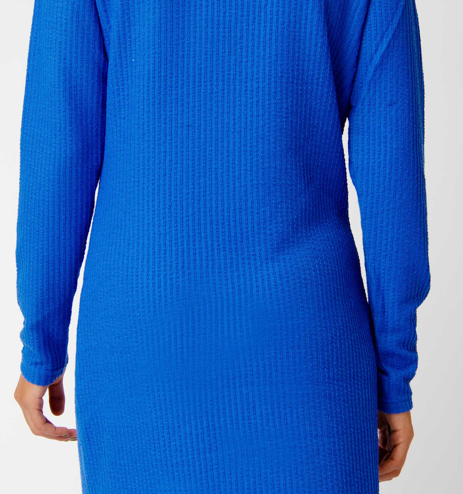 Deze midi-jurk van JDY heeft een mooie, blauwe kleur, makkelijk te combineren. Hou deze kleur en de pasvorm (aansluitend) het langst mooi door alle wasvoorschriften te respecteren (voor het materiaal: elastaan, polyester). Goed om te weten: deze midi-jurk van JDY valt bij maat S cm lang.