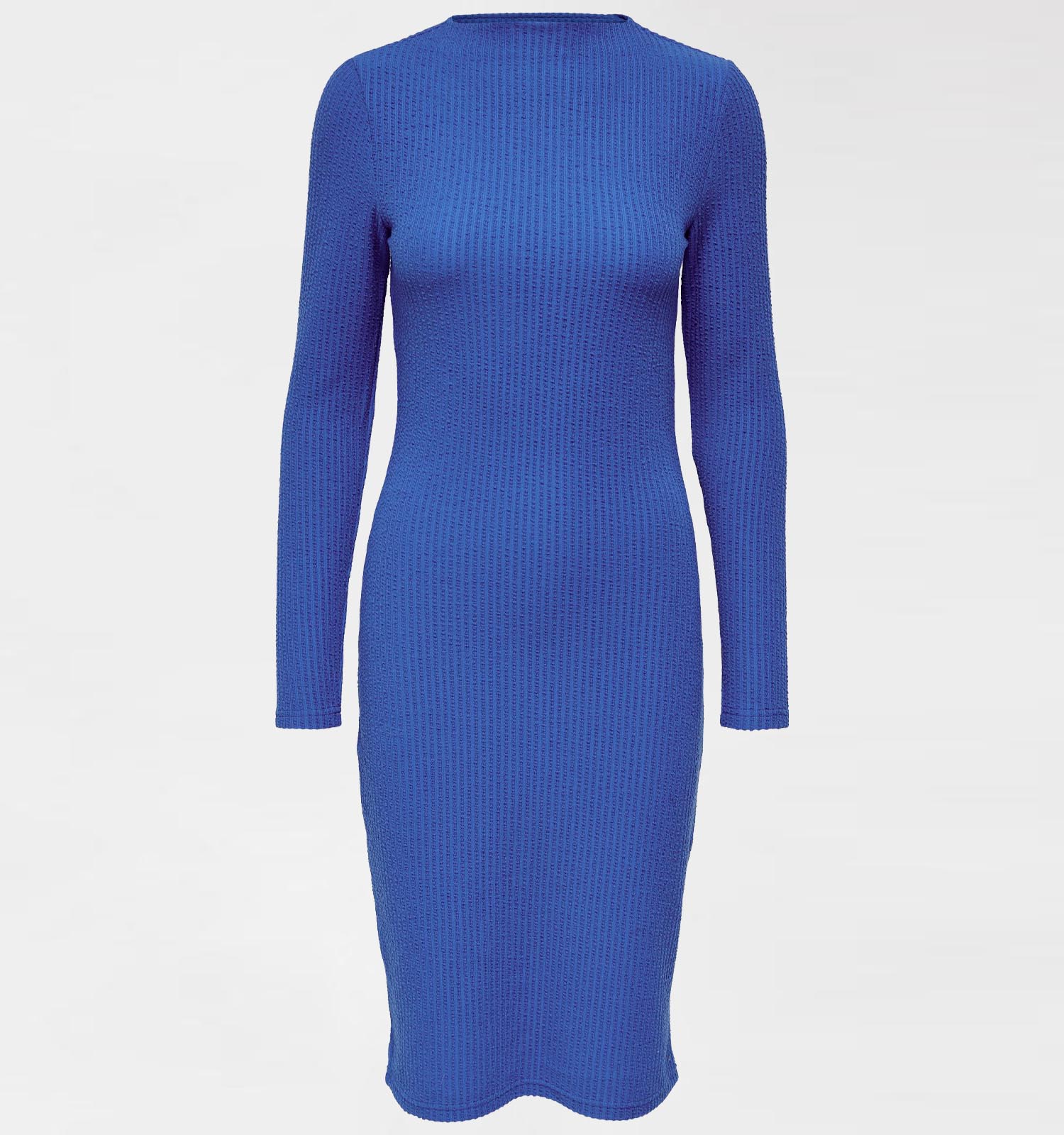 Deze JDY jurk is de gulden middenweg voor als je niet kan beslissen of je nu een korte of een lange jurk wil aantrekken! Het leuke aan dit halflange, blauwe model van JDY is dat je ze het hele jaar door kan dragen. In de zomer gooi je er sneakers, high heels of slippers onder, in de winter een knusse panty en (enkel)laarsjes of boots. Een vest of jas die ergens tussen de taille en de heupen valt qua lengte, staat hier het best op. Met zo’n bovenstuk wordt jouw zandloperfiguur extra geaccentueerd, dat staat heel mooi.