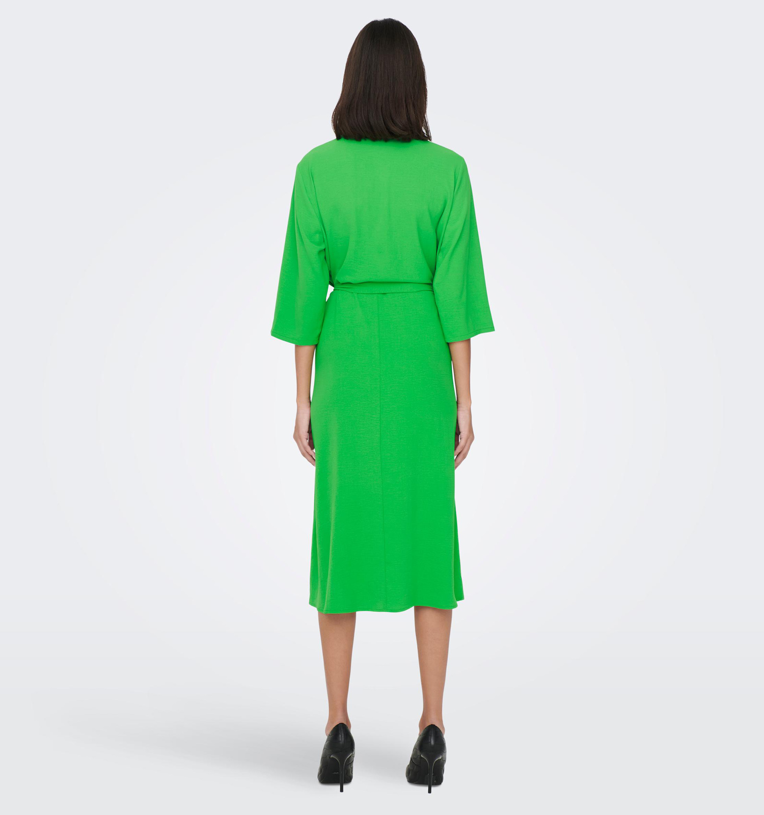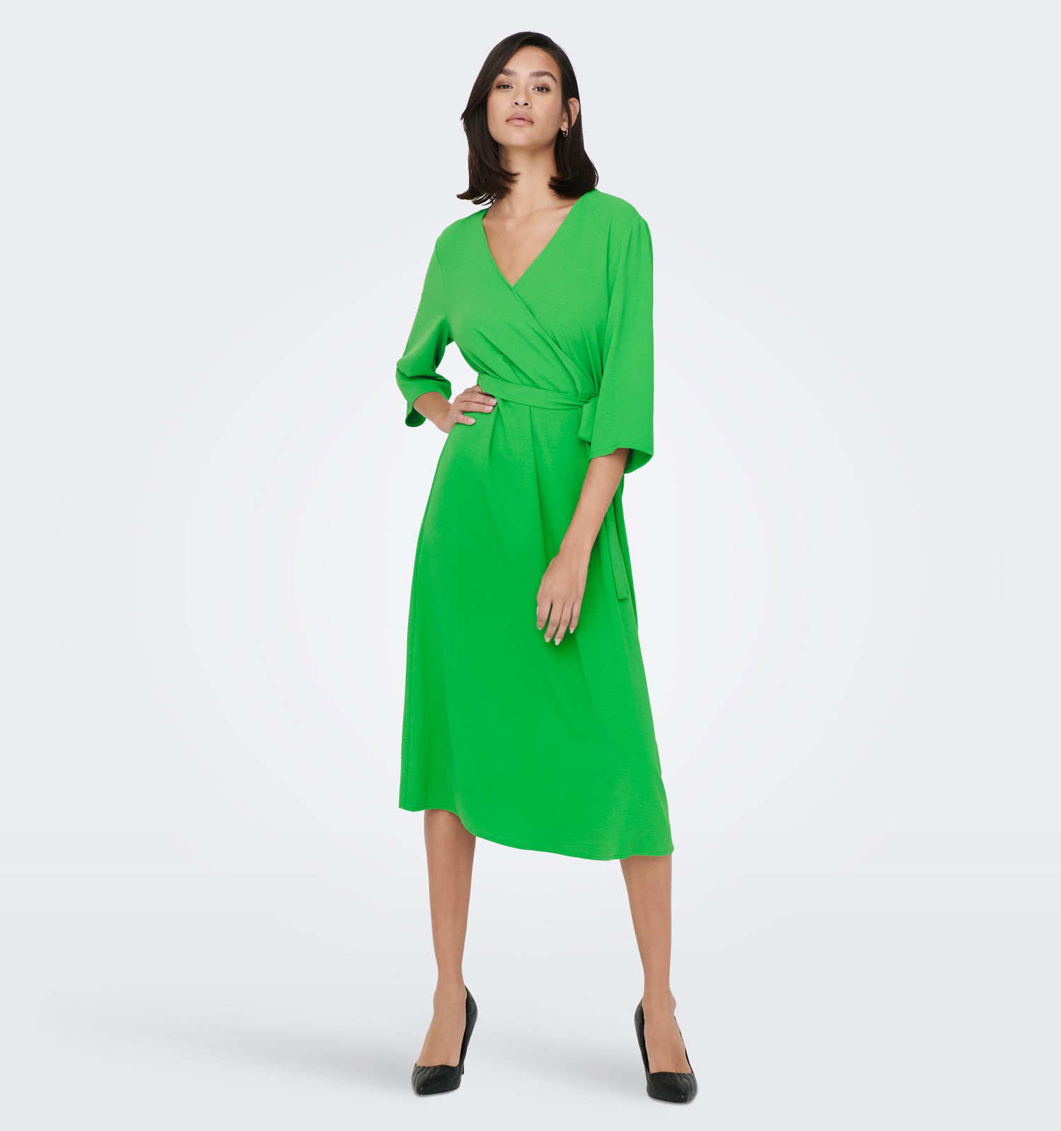 Deze JDY jurk is de gulden middenweg voor als je niet kan beslissen of je nu een korte of een lange jurk wil aantrekken! Het leuke aan dit halflange, groene model van JDY is dat je ze het hele jaar door kan dragen. In de zomer gooi je er sneakers, high heels of slippers onder, in de winter een knusse panty en (enkel)laarsjes of boots. Een vest of jas die ergens tussen de taille en de heupen valt qua lengte, staat hier het best op. Met zo’n bovenstuk wordt jouw zandloperfiguur extra geaccentueerd, dat staat heel mooi.