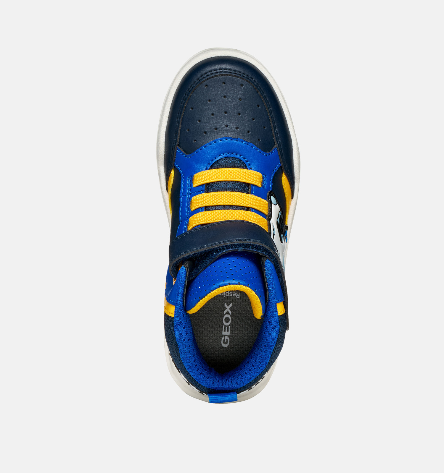 Deze coole hoge schoenen voor jongens zien er niet alleen keileuk uit, ze hebben ook nog eens een hoog comfortlevel! Deze blauwe jongenshoge schoenen hebben de gepatenteerde Geox-zolen, waardoor zweet wordt afgevoerd via microgaatjes in de buitenzolen. Zo blijven kindervoeten de hele dag lang droog, zelfs tijdens het rennen, klimmen, spelen en springen! Door het comfort van deze ademende kinderhoge schoenen voor jongens is geen avontuur te gek meer. Je zal voelen dat de hiel van deze Geox hoge schoenen licht verstevigd is. Dat houdt de voeten waar ze horen, en vermindert de kans op het omslagen van de voeten.