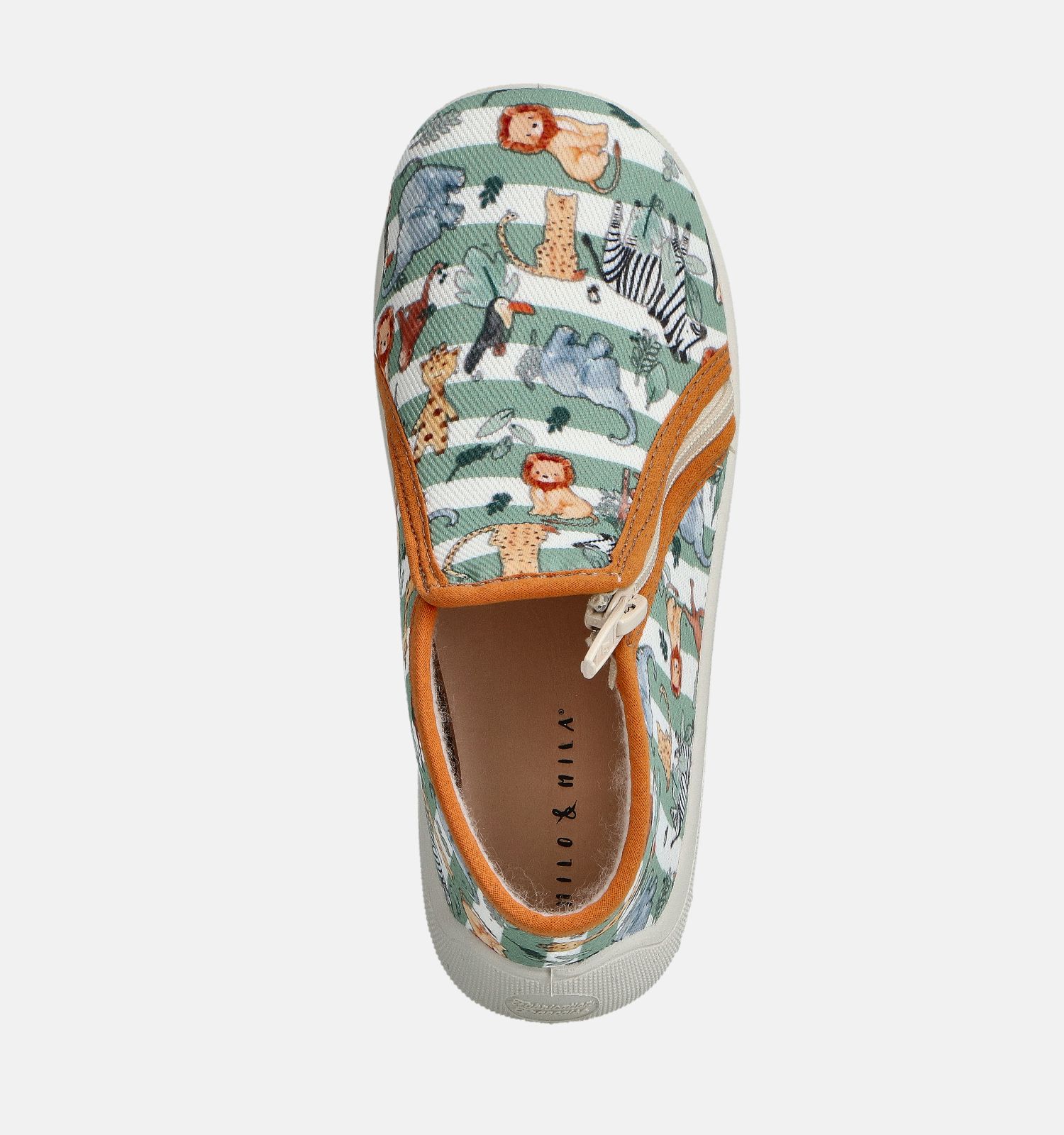 Milo & Mila Zoo Gestreepte Pantoffels Groen