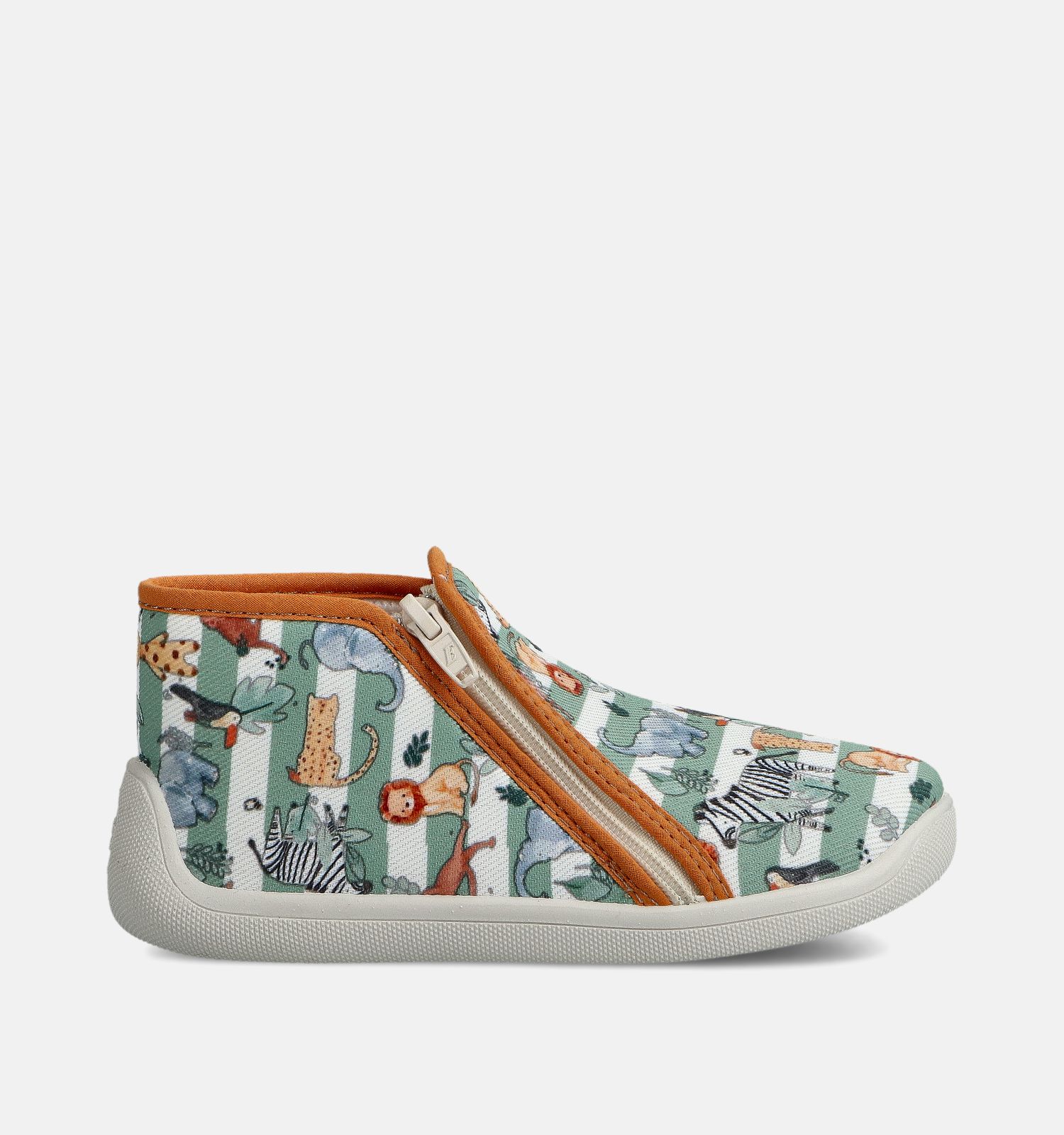 Deze groene jongenspantoffels hebben een ritssluiting, zodat jongens deze makkelijk kunnen aan- en uittrekken.