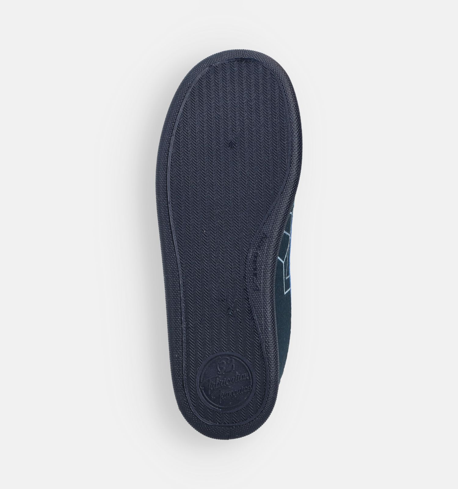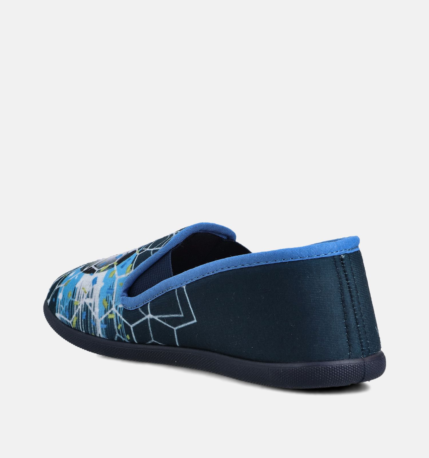Deze blauwe jongenspantoffels hebben een elastiek, instapsluiting, zodat jongens deze makkelijk kunnen aan- en uittrekken.