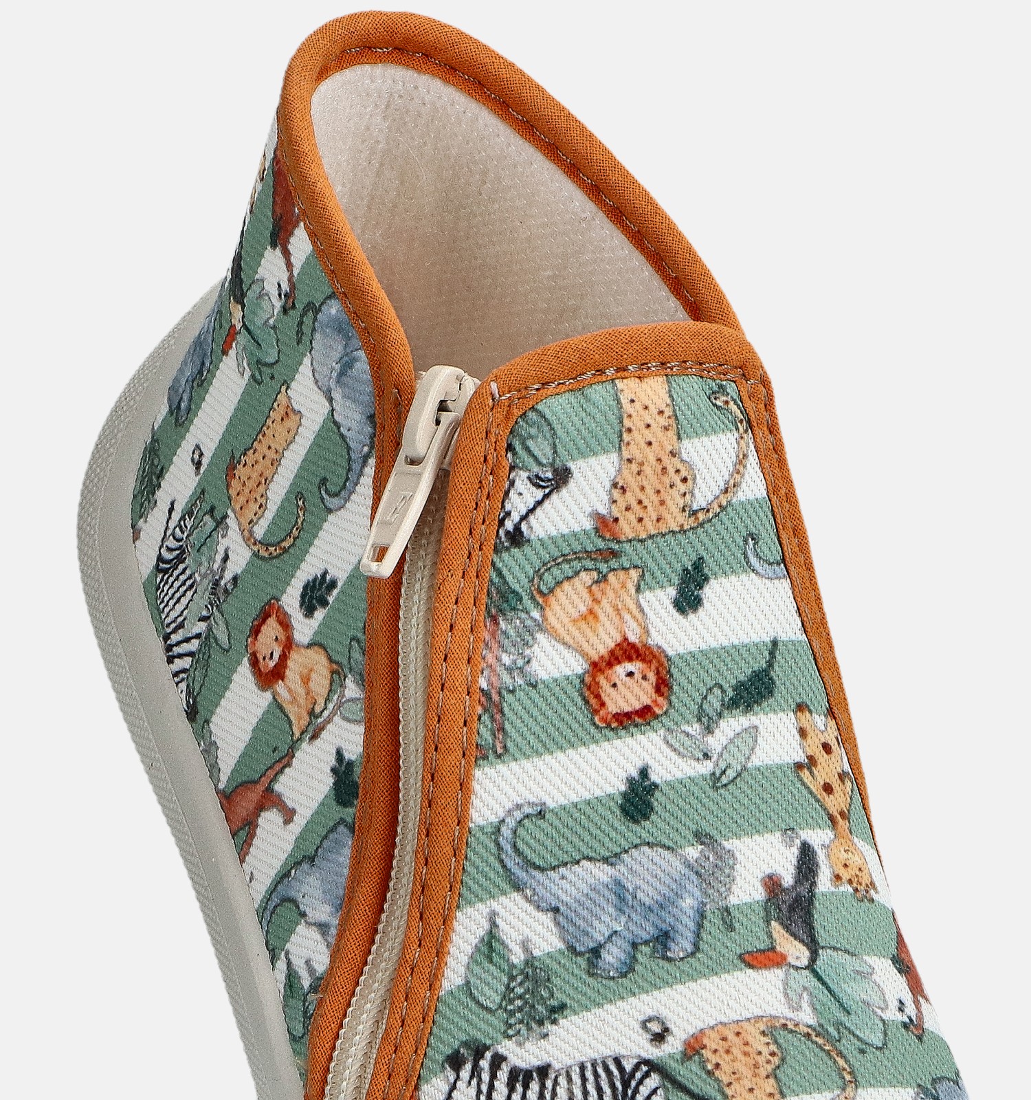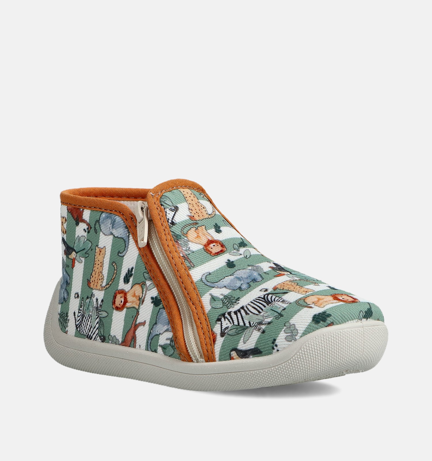 Deze groene jongenspantoffels hebben een ritssluiting, zodat jongens deze makkelijk kunnen aan- en uittrekken.