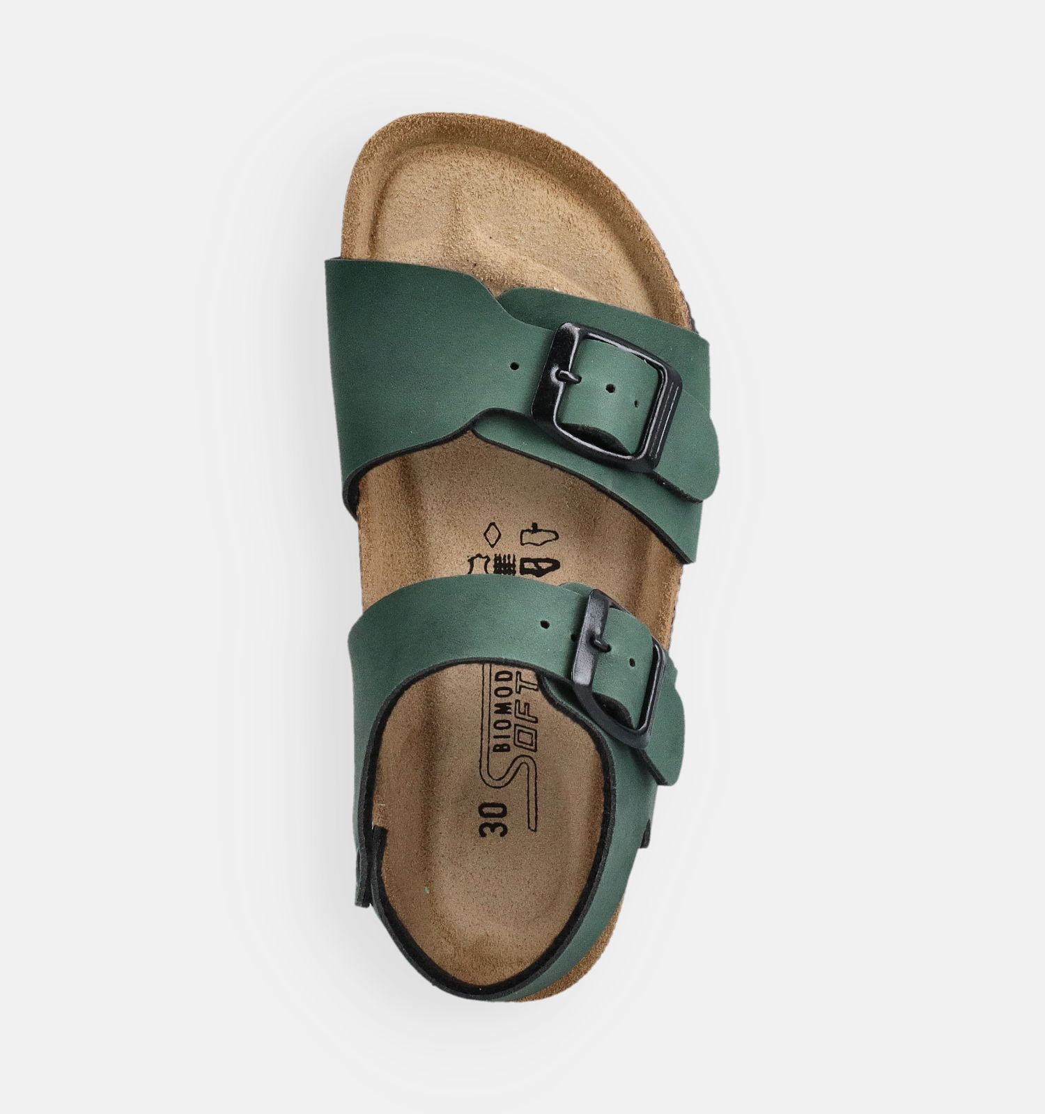 Het interieur van jongenssandalen is natuurlijk ook belangrijk. De binnenzolen uit kurk, suède zijn zacht, ademend en ergonomisch. Een grote meerwaarde in zomerschoenen! De gesp-sluiting houdt deze groene sandalen stevig aan alle kindervoeten. Zo kan jouw oogappel in alle veiligheid in de zon, van de zon genieten.
