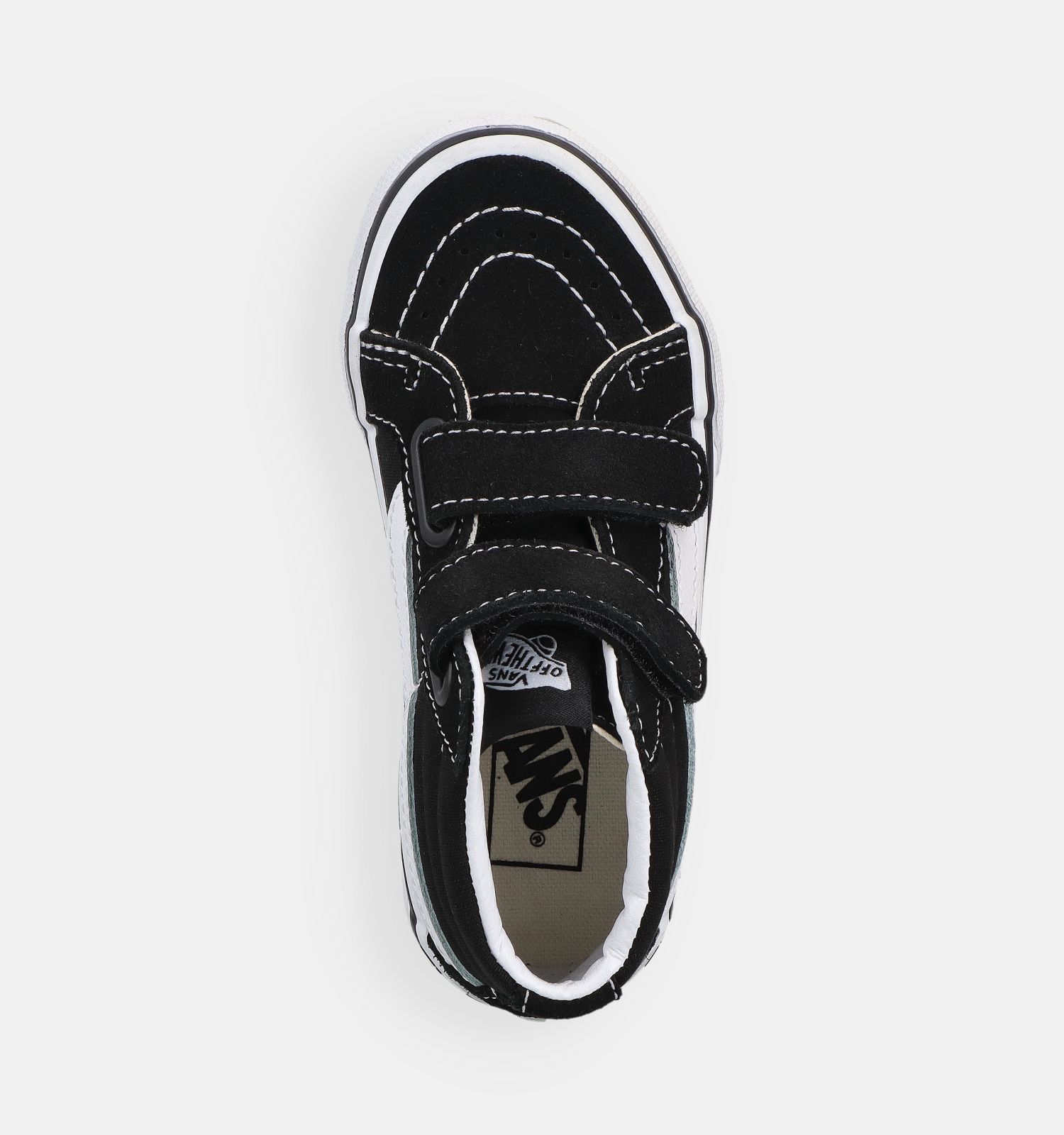 Vans is een iconisch sneakermerk, groot geworden door de Californische skate- en surfgemeenschap in de jaren ’70. Deze generatie blijft dan ook de belangrijkste inspiratie voor Vans! Deze zwarte Vans Sk8-Mid zijn modern en moeiteloos cool. Deze jongens, meisjessneakers van Vans hebben een vulcanized wafelzool. Dat betekent dat het zoolmateriaal, elastische rubber, wordt verstevigd en versterkt via een chemisch proces. Dit maakt deze zwarte sneakers duurzamer, maar het geeft de onderzolen ook meer grip.