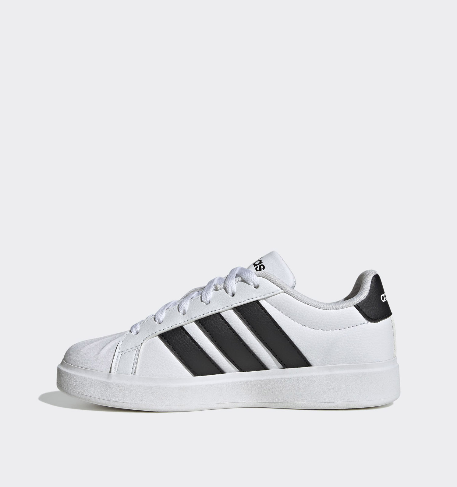 Kinderen zijn dol op adidas. Deze witte sneakers van adidas zijn niet alleen kei cool, ze zijn ook op-en-top comfortabel. De vetersluiting houdt ze stevig aan de voeten tijdens de zotste avonturen! De hiel van deze adidas sneakers voor jongens is licht verstevigd. Dat houdt de voeten waar ze horen, en vermindert de kans op het omslagen van de voeten. Deze witte adidas schoenen zijn de perfecte keuze voor actieve en sportieve kids!