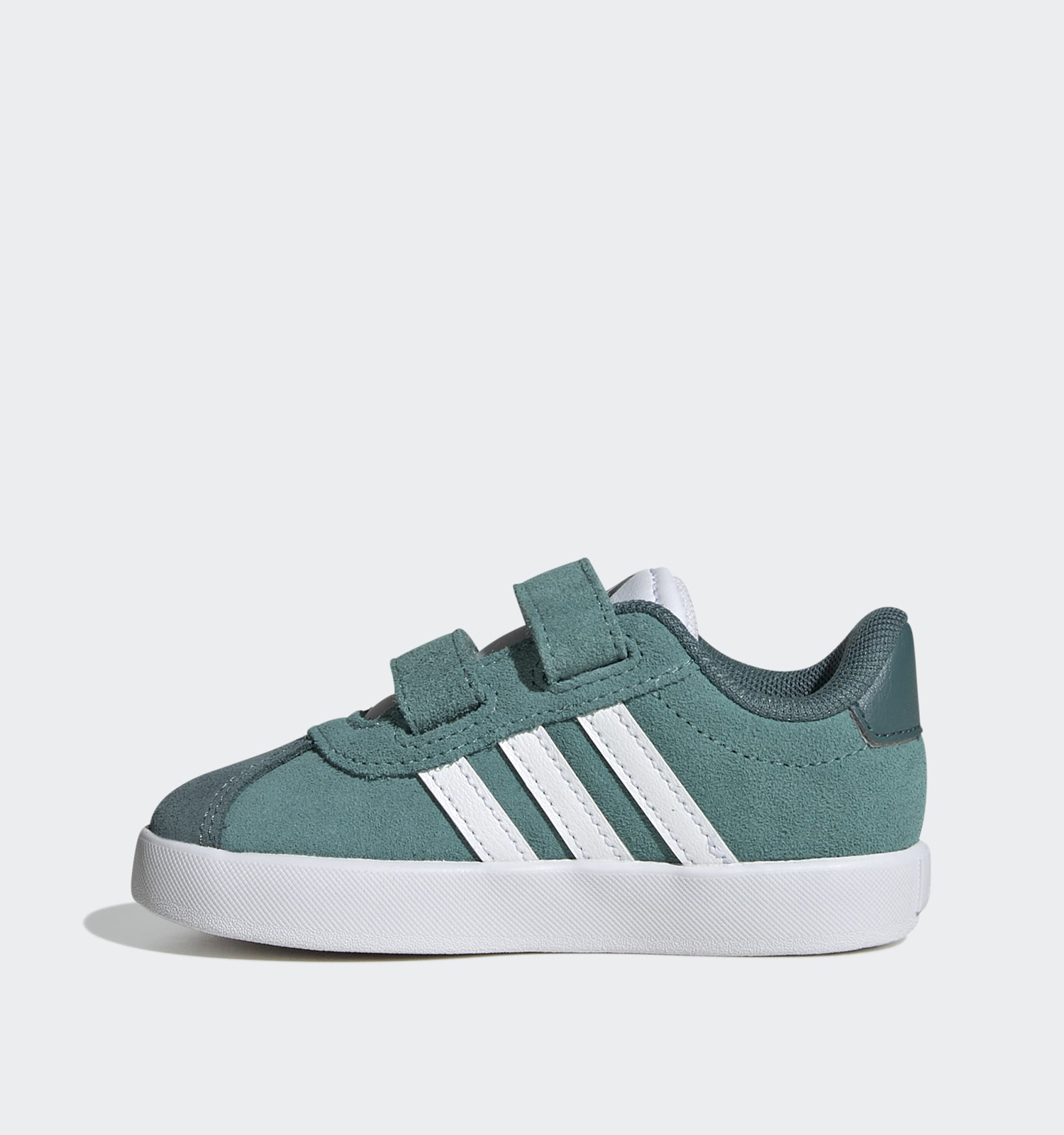 Kinderen zijn dol op adidas. Deze groene sneakers van adidas zijn niet alleen kei cool, ze zijn ook op-en-top comfortabel. De velcrosluiting houdt ze stevig aan de voeten tijdens de zotste avonturen! De hiel van deze adidas sneakers voor jongens is licht verstevigd. Dat houdt de voeten waar ze horen, en vermindert de kans op het omslagen van de voeten. Deze groene adidas schoenen zijn de perfecte keuze voor actieve en sportieve kids!