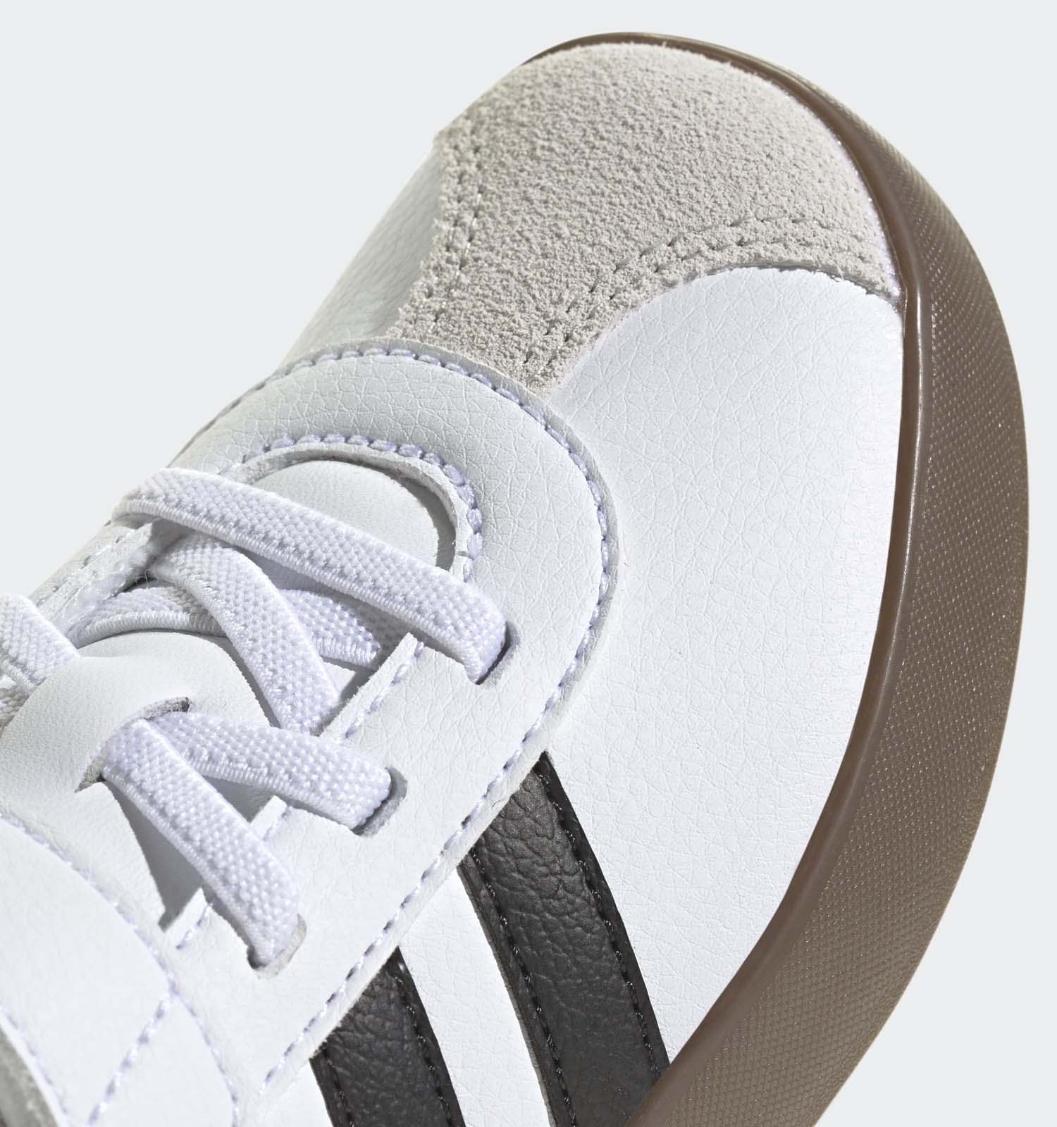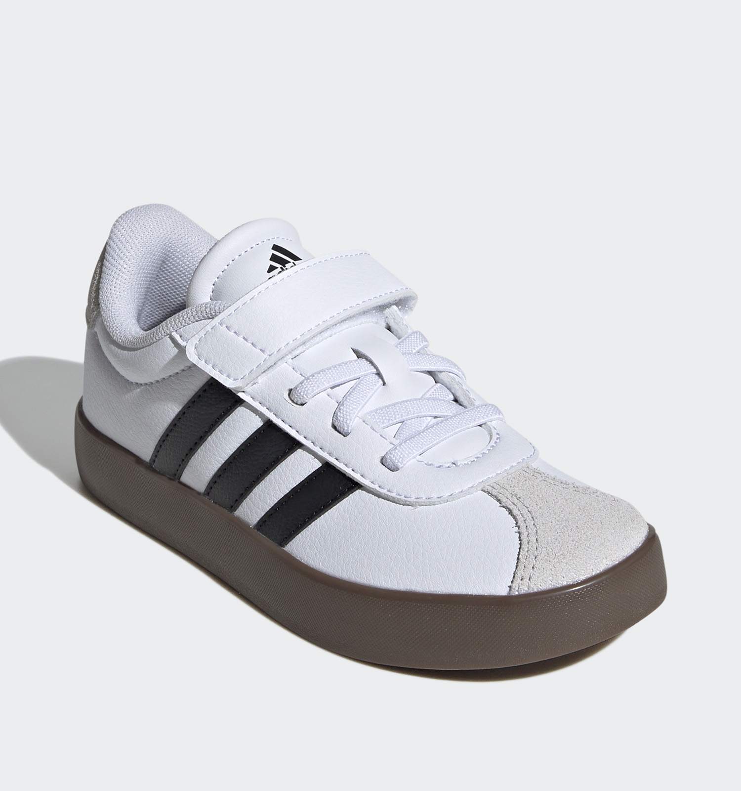 Kinderen zijn dol op adidas. Deze witte sneakers van adidas zijn niet alleen kei cool, ze zijn ook op-en-top comfortabel. De elastiek & velcrosluiting houdt ze stevig aan de voeten tijdens de zotste avonturen! De hiel van deze adidas sneakers voor jongens is licht verstevigd. Dat houdt de voeten waar ze horen, en vermindert de kans op het omslagen van de voeten. Deze witte adidas schoenen zijn de perfecte keuze voor actieve en sportieve kids!