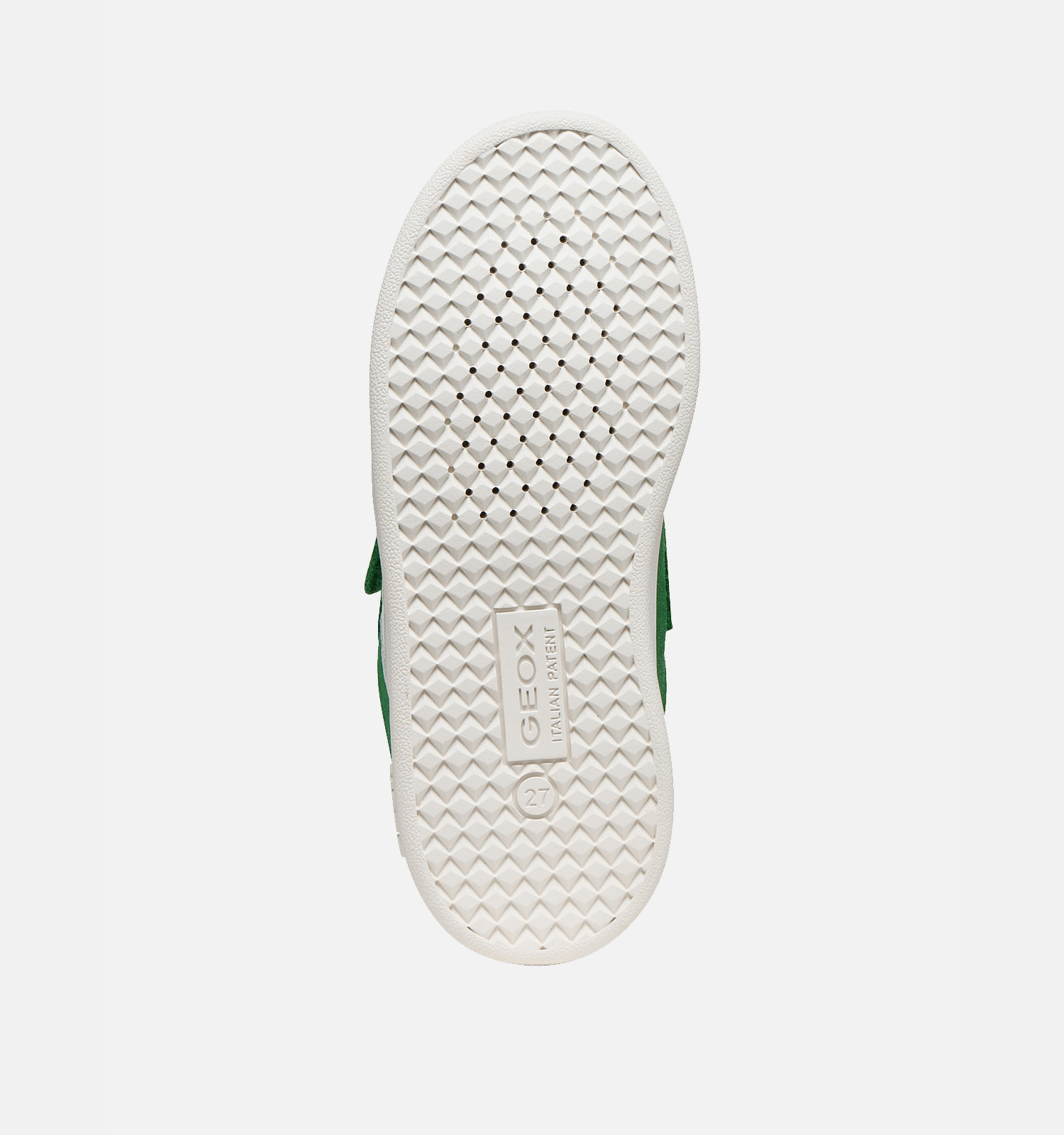 Deze coole sneakers voor jongens zien er niet alleen keileuk uit, ze hebben ook nog eens een hoog comfortlevel! Deze groene jongenssneakers hebben de gepatenteerde Geox-zolen, waardoor zweet wordt afgevoerd via microgaatjes in de buitenzolen. Zo blijven kindervoeten de hele dag lang droog, zelfs tijdens het rennen, klimmen, spelen en springen! Door het comfort van deze ademende kindersneakers voor jongens is geen avontuur te gek meer. Je zal voelen dat de hiel van deze Geox sneakers licht verstevigd is. Dat houdt de voeten waar ze horen, en vermindert de kans op het omslagen van de voeten.