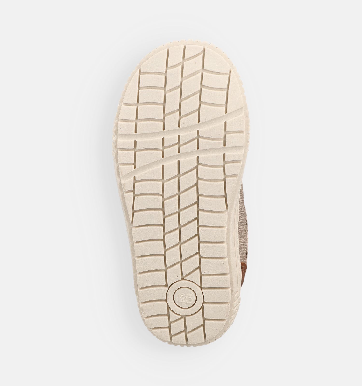 Deze Milo & Mila sneakers hebben een stevige elastiek & velcrosluiting. Dat houdt deze beige jongenssneakers goed aan de voeten tijdens het stappen, rennen, springen en sporten! De semi-soepele en slijtvaste zolen laten de voeten bovendien mooi afrollen tijdens het wandelen. Dat is belangrijk voor stabiliteit en evenwicht, maar zorgt er ook voor dat jongens minder snel vermoeide voeten zullen hebben.