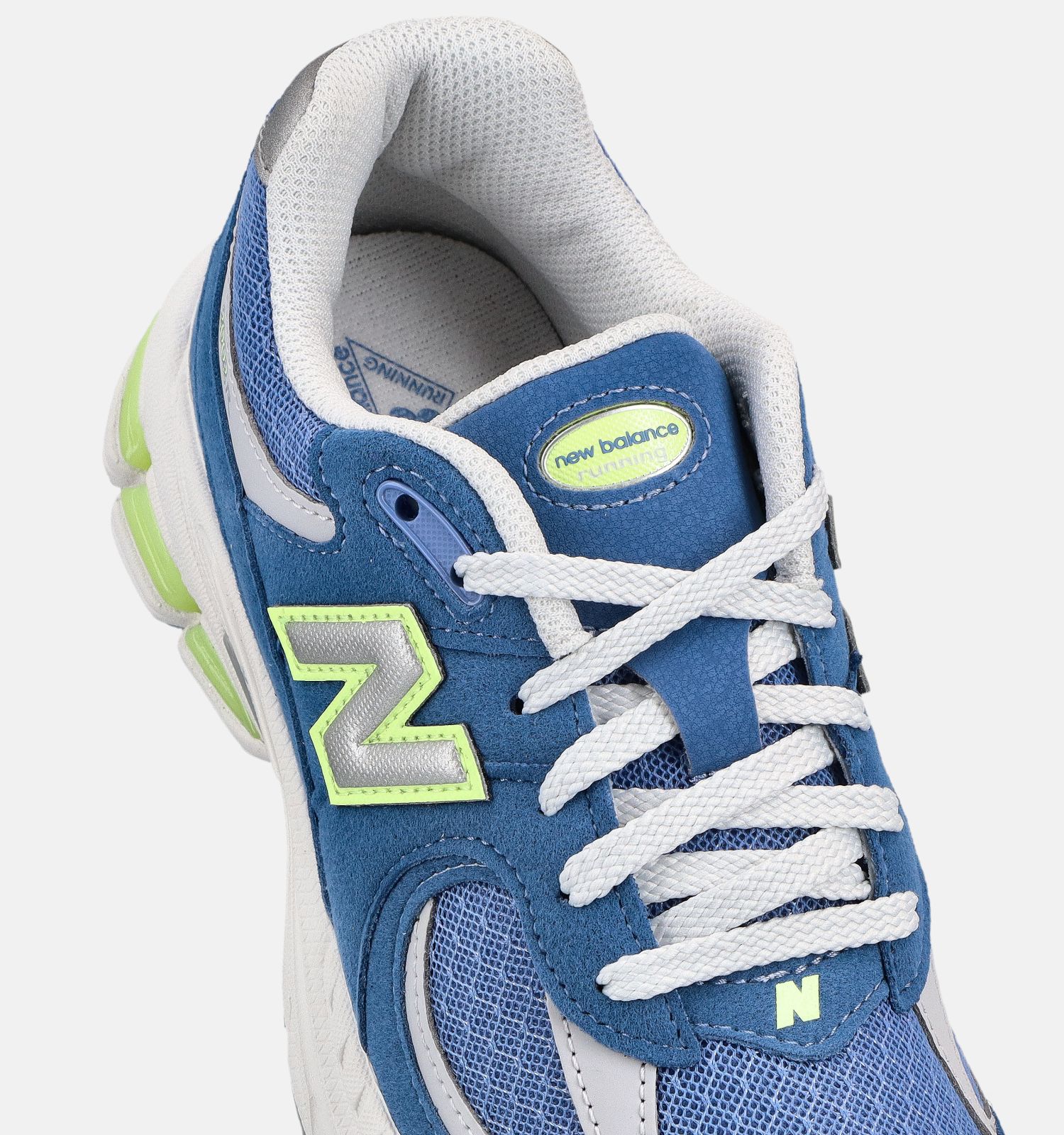 Goed om te weten voor het onderhoud: het buitenmateriaal van deze blauwe sneakers is sterk stof. Binnenin zijn deze New Balance schoenen afgewerkt met wat zachter stof en stof.