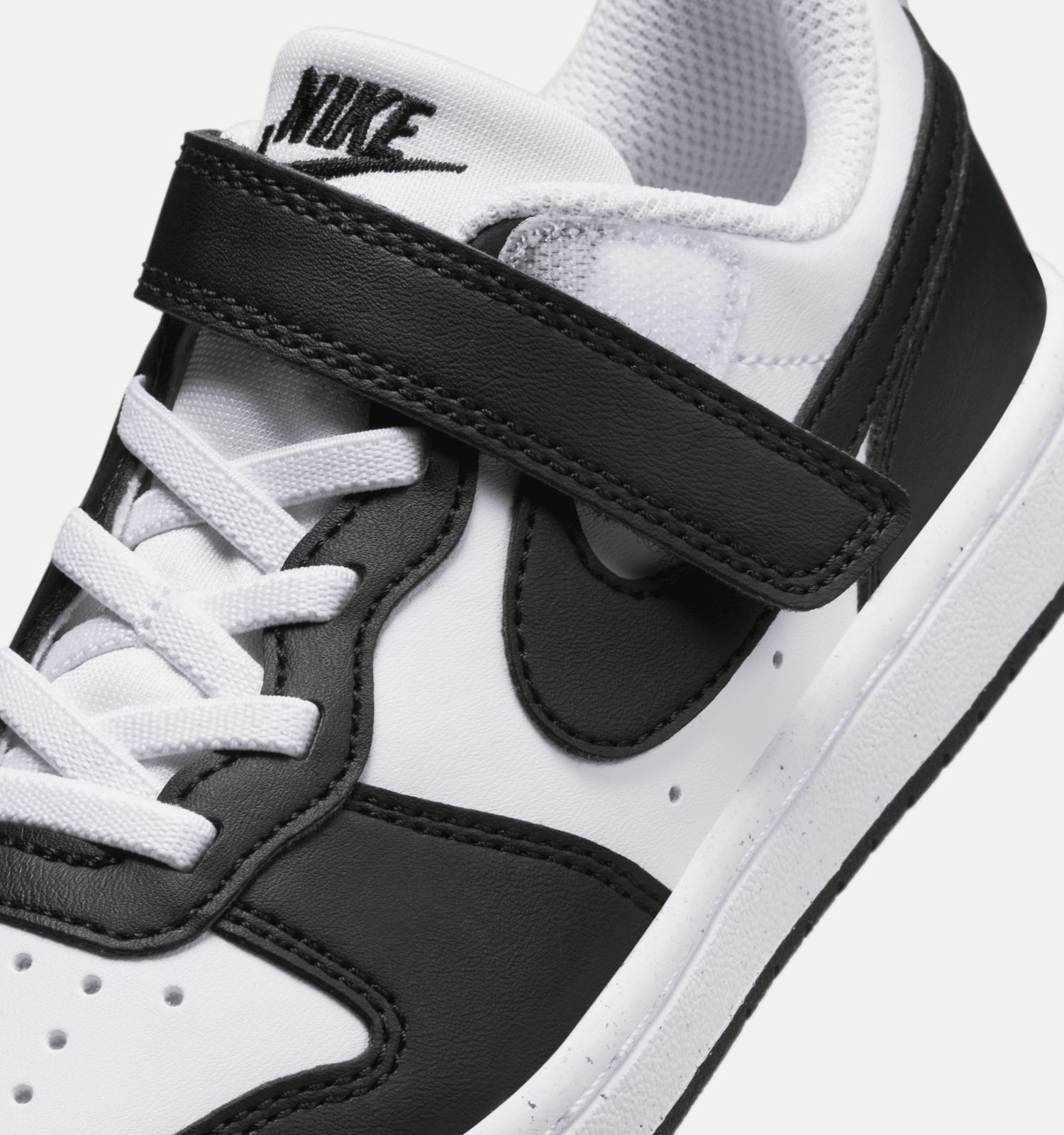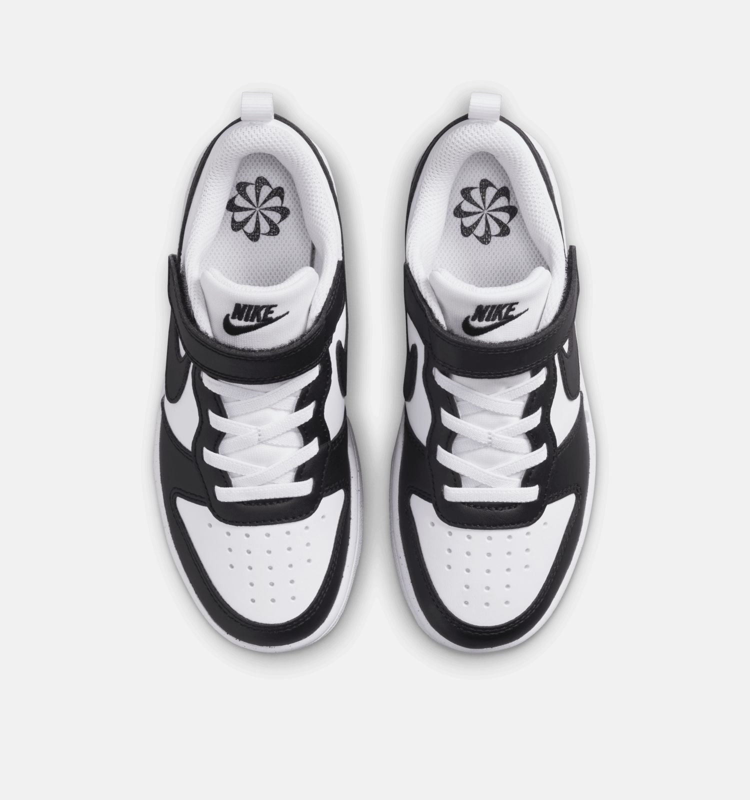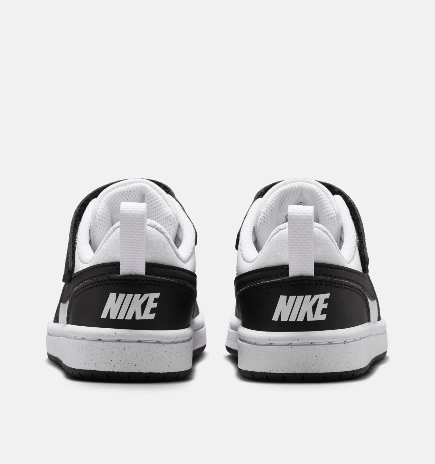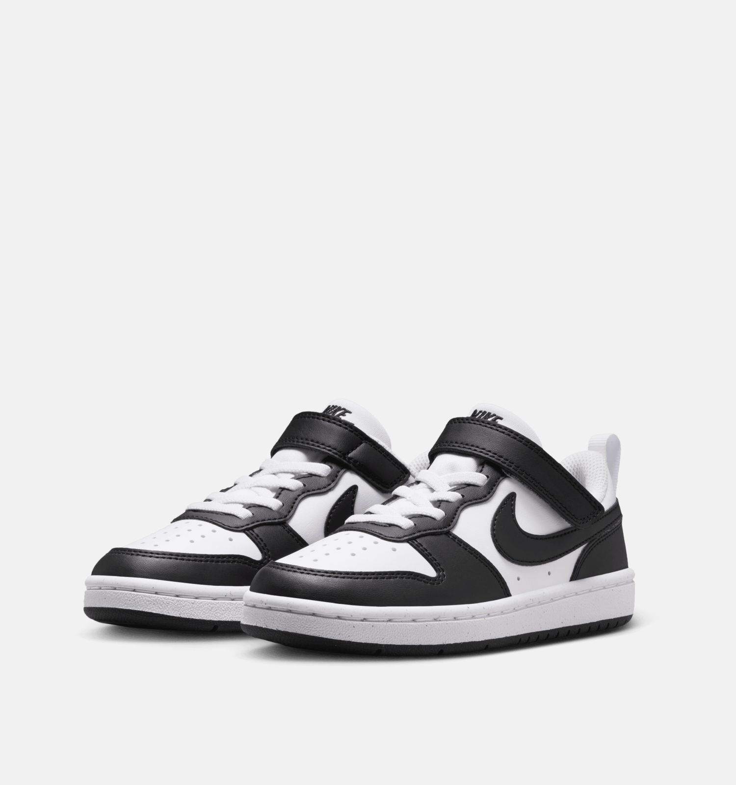 Deze Nike Court Borough sneakers hebben een ademende binnenkant van stof, met aan de buitenkant sterk kunstleer. Het is belangrijk dat deze Nikes goed aanpassen: kies dus de schoenmaat waar de tenen nog genoeg beweegruimte hebben. Dit check je het best door te voelen ter hoogte van de schoenneus als het kind deze zwarte Nike Court Borough sneakers aanheeft.