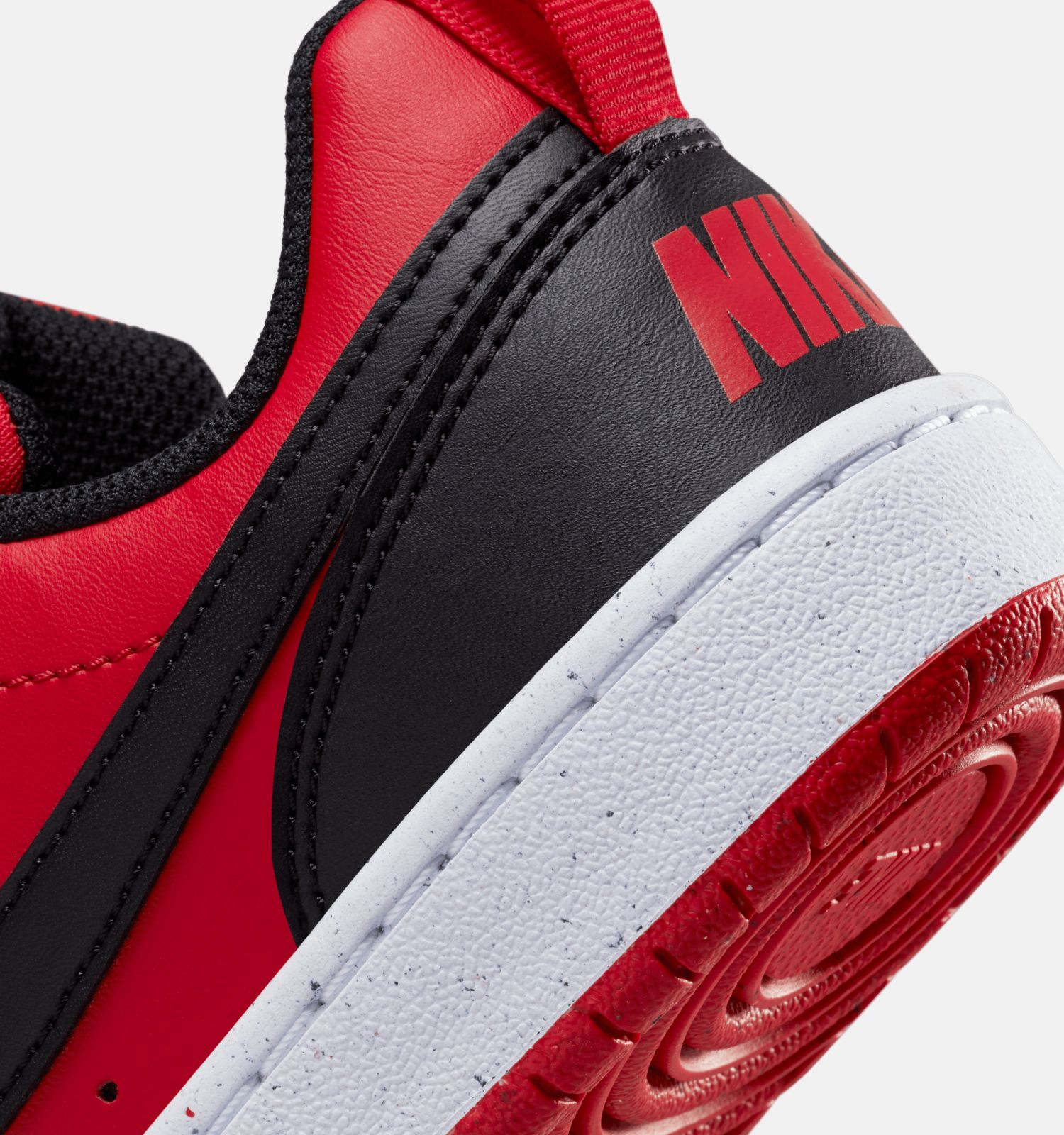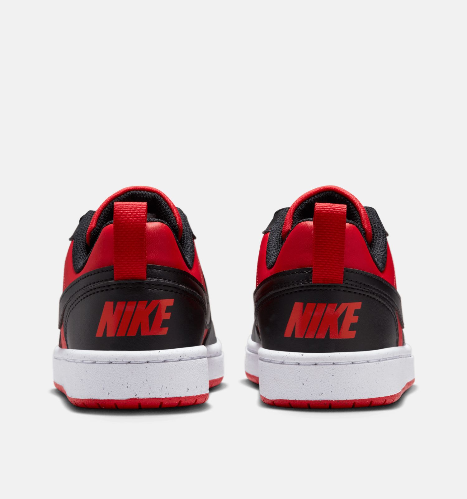 Deze Nike Court Borough sneakers hebben een ademende binnenkant van stof, met aan de buitenkant sterk kunstleer. Het is belangrijk dat deze Nikes goed aanpassen: kies dus de schoenmaat waar de tenen nog genoeg beweegruimte hebben. Dit check je het best door te voelen ter hoogte van de schoenneus als het kind deze rode Nike Court Borough sneakers aanheeft.