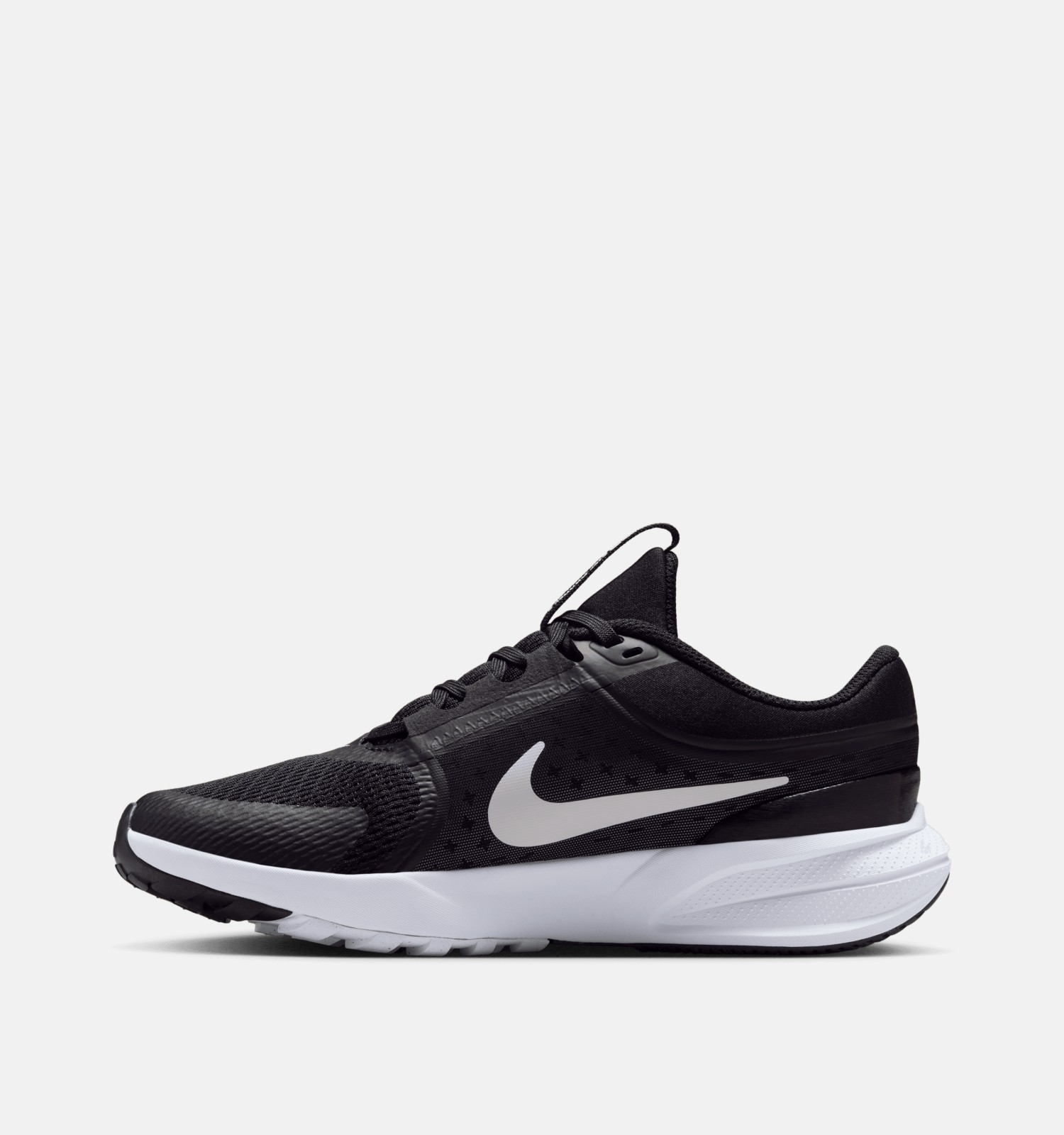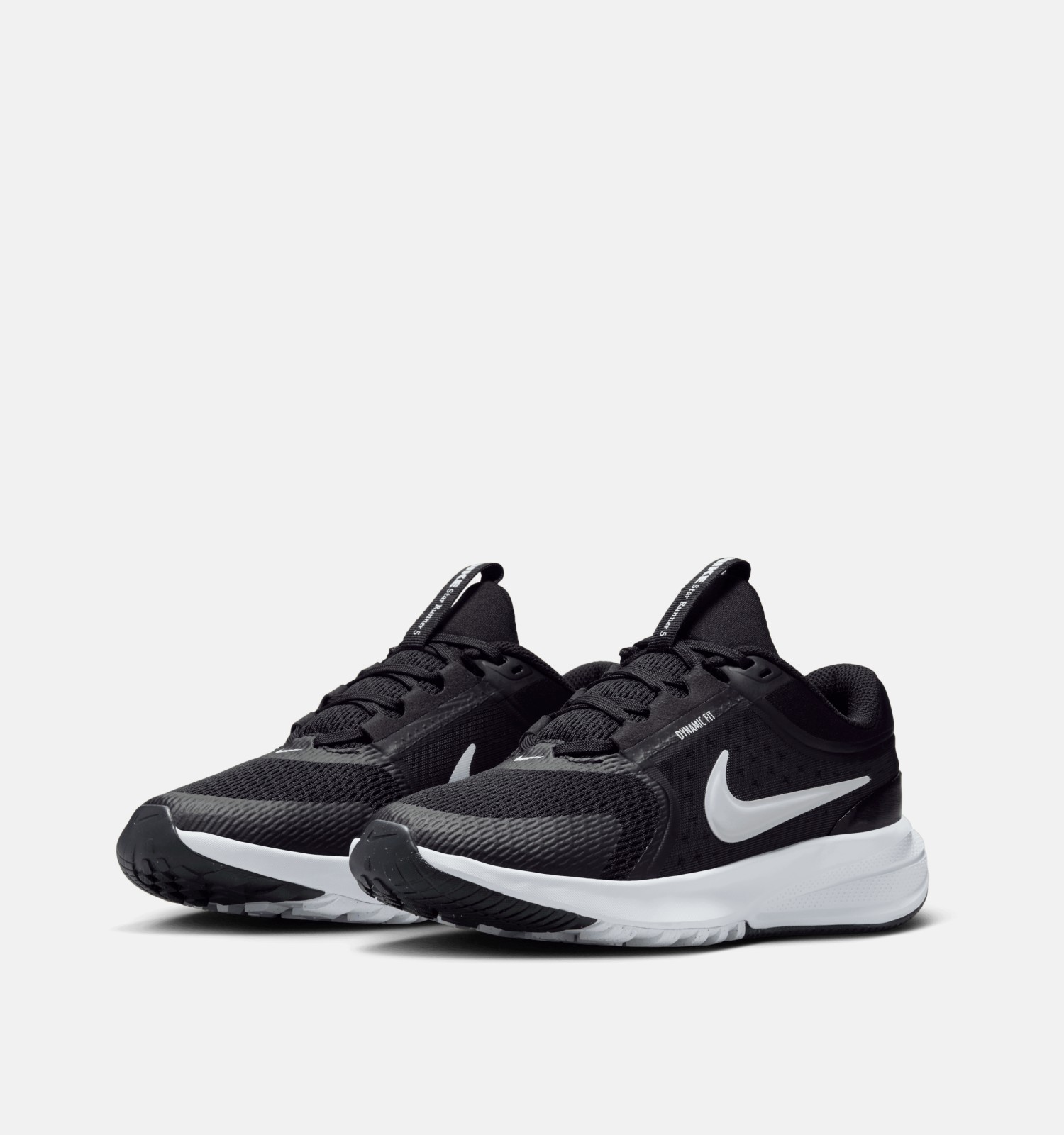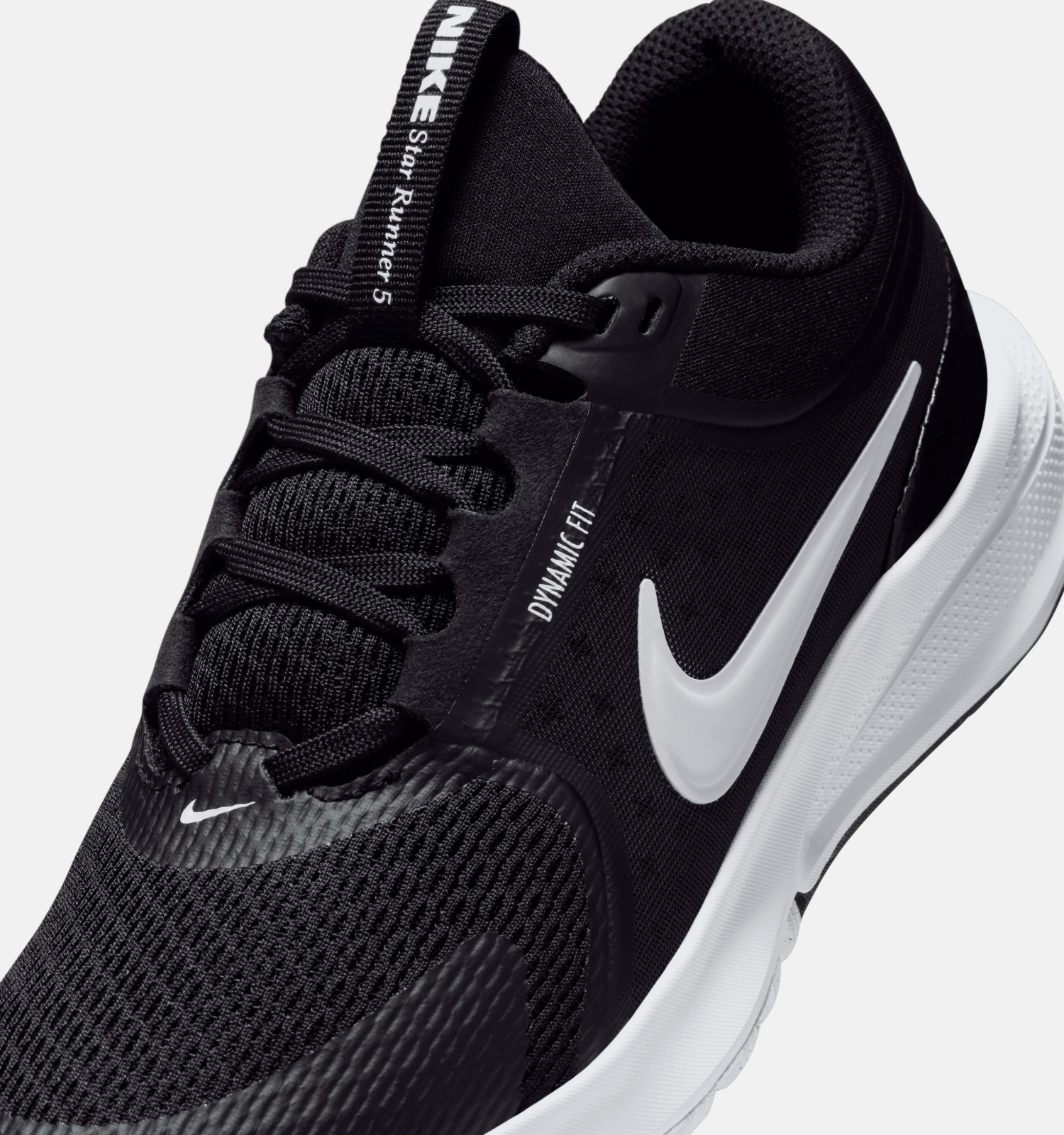 Deze Nike Star Runner sneakers hebben een ademende binnenkant van stof, met aan de buitenkant sterk kunstleer, stof. Het is belangrijk dat deze Nikes goed aanpassen: kies dus de schoenmaat waar de tenen nog genoeg beweegruimte hebben. Dit check je het best door te voelen ter hoogte van de schoenneus als het kind deze zwarte Nike Star Runner sneakers aanheeft.