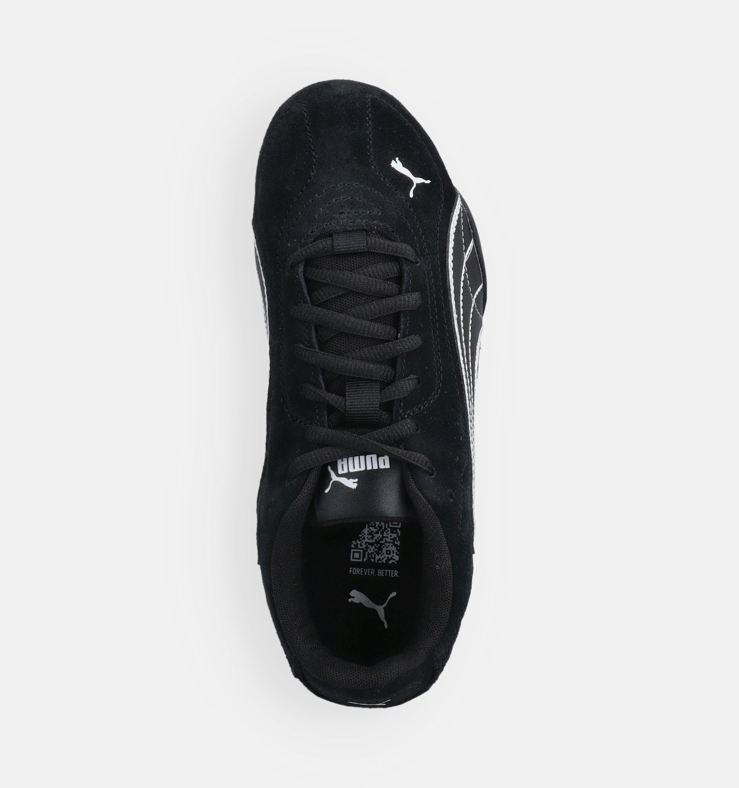 Goed om te weten voor het onderhoud: het buitenmateriaal van deze zwarte sneakers is sterk suède. Binnenin zijn deze Puma schoenen afgewerkt met wat zachter stof en stof.
