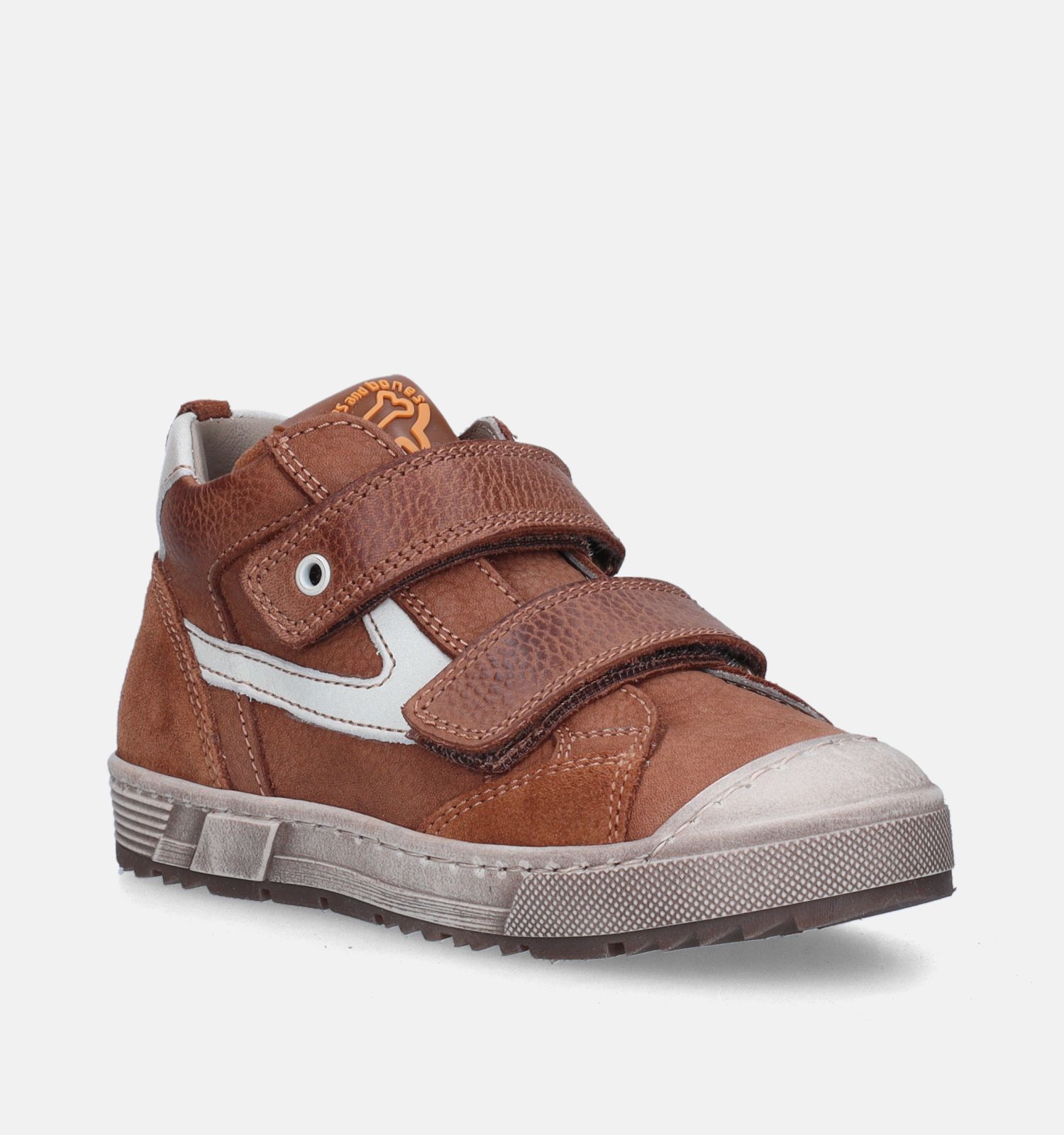 Deze cognac jongens sneakers zijn vervaardigd uit stevig leer, met binnenin een afwerking van zacht leer. Wat ook leuk is, is het te gekke design van deze STONES and BONES sneakers. Zo is jouw rockster ongetwijfeld de allercoolste op de speelplaats. Goed om te weten: deze cognac sneakers van STONES and BONES blijven het langst mooi door ze, voor het dragen, te verzorgen met een onderhoudsproduct geschikt voor leer.