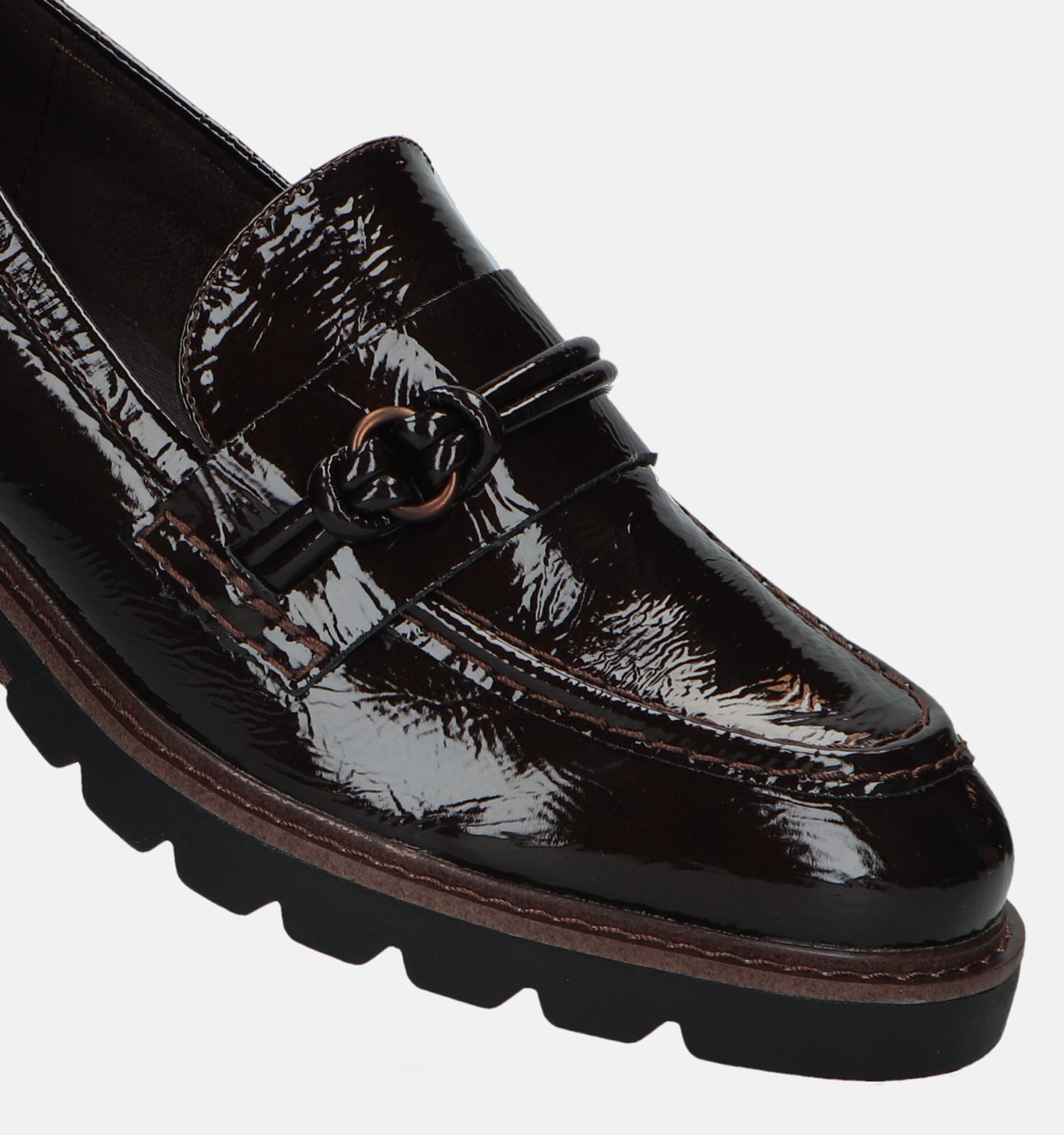 Deze instapper van Marco Tozzi is vervaardigd uit lak en binnenin afgewerkt in stof.