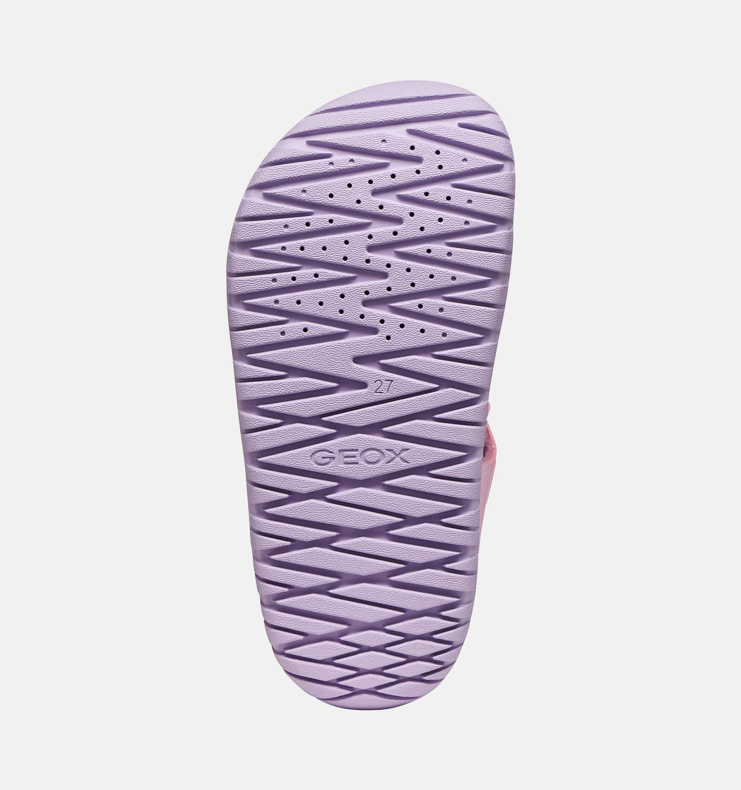 Deze coole sandalen voor meisjes zien er niet alleen keileuk uit, ze hebben ook nog eens een hoog comfortlevel! Deze roze meisjessandalen hebben de gepatenteerde Geox-zolen, waardoor zweet wordt afgevoerd via microgaatjes in de buitenzolen. Zo blijven kindervoeten de hele dag lang droog, zelfs tijdens het rennen, klimmen, spelen en springen! Door het comfort van deze ademende kindersandalen voor meisjes is geen avontuur te gek meer. Je zal voelen dat de hiel van deze Geox sandalen licht verstevigd is. Dat houdt de voeten waar ze horen, en vermindert de kans op het omslagen van de voeten.