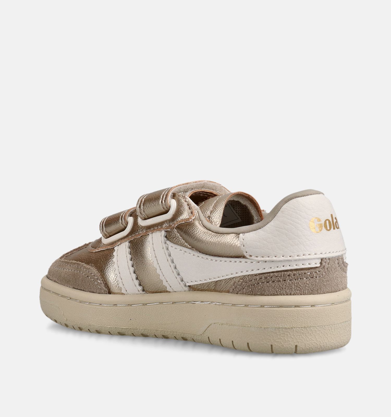 Deze Gola sneakers hebben een stevige velcrosluiting. Dat houdt deze gouden meisjessneakers goed aan de voeten tijdens het stappen, rennen, springen en sporten! De semi-soepele en slijtvaste zolen laten de voeten bovendien mooi afrollen tijdens het wandelen. Dat is belangrijk voor stabiliteit en evenwicht, maar zorgt er ook voor dat meisjes minder snel vermoeide voeten zullen hebben.
