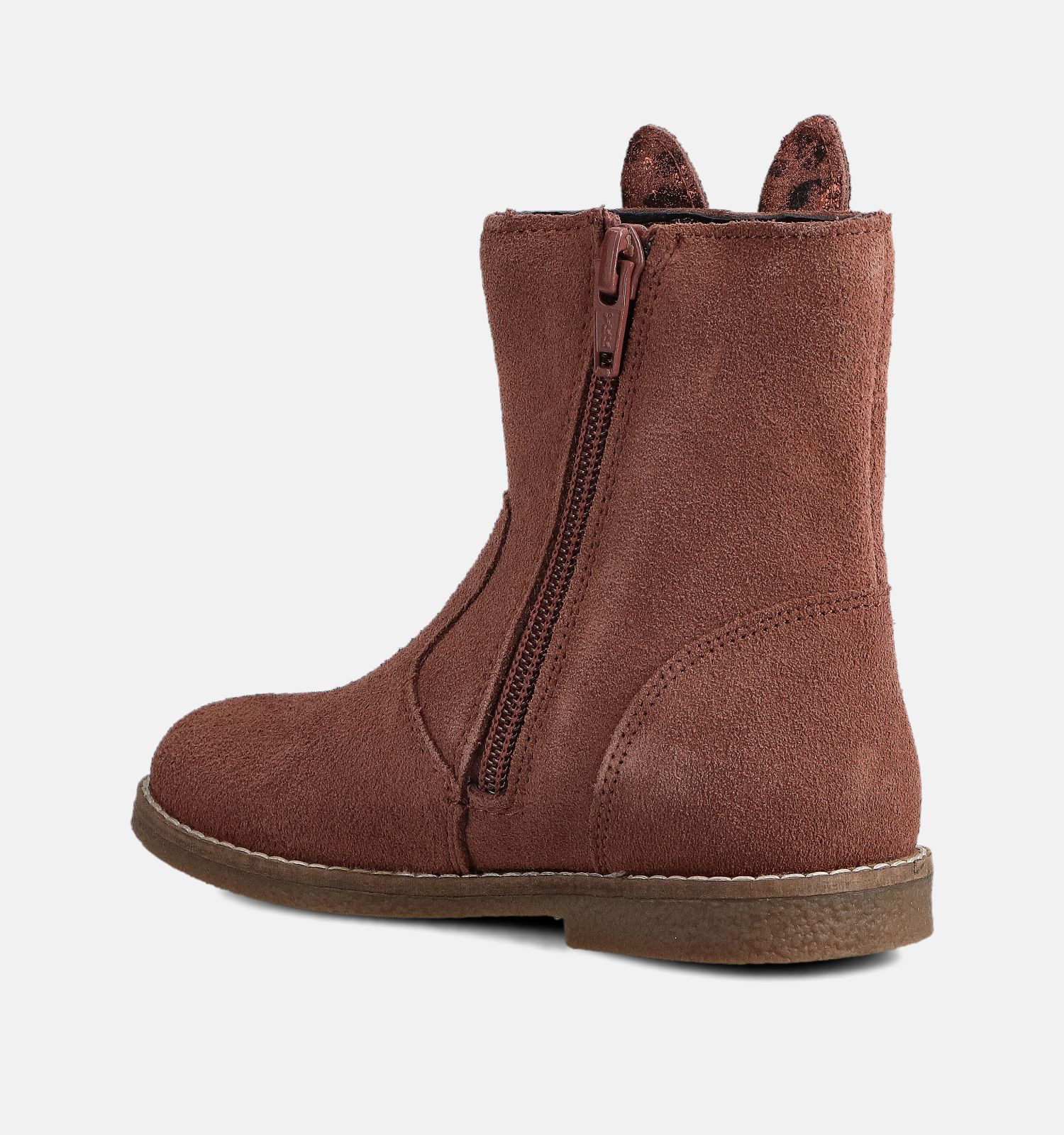 Deze korte laars van Milo & Mila is vervaardigd uit suède en binnenin afgewerkt in stof.