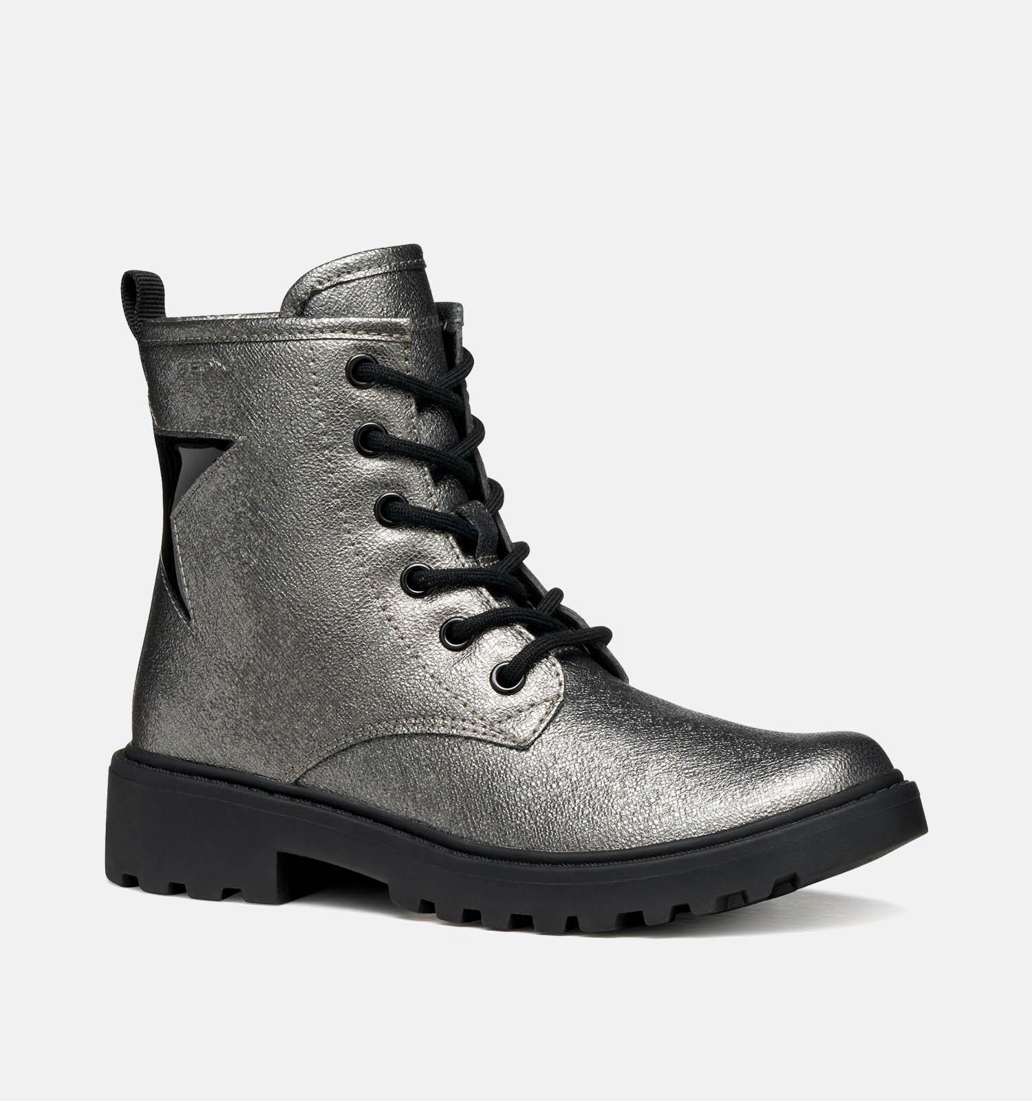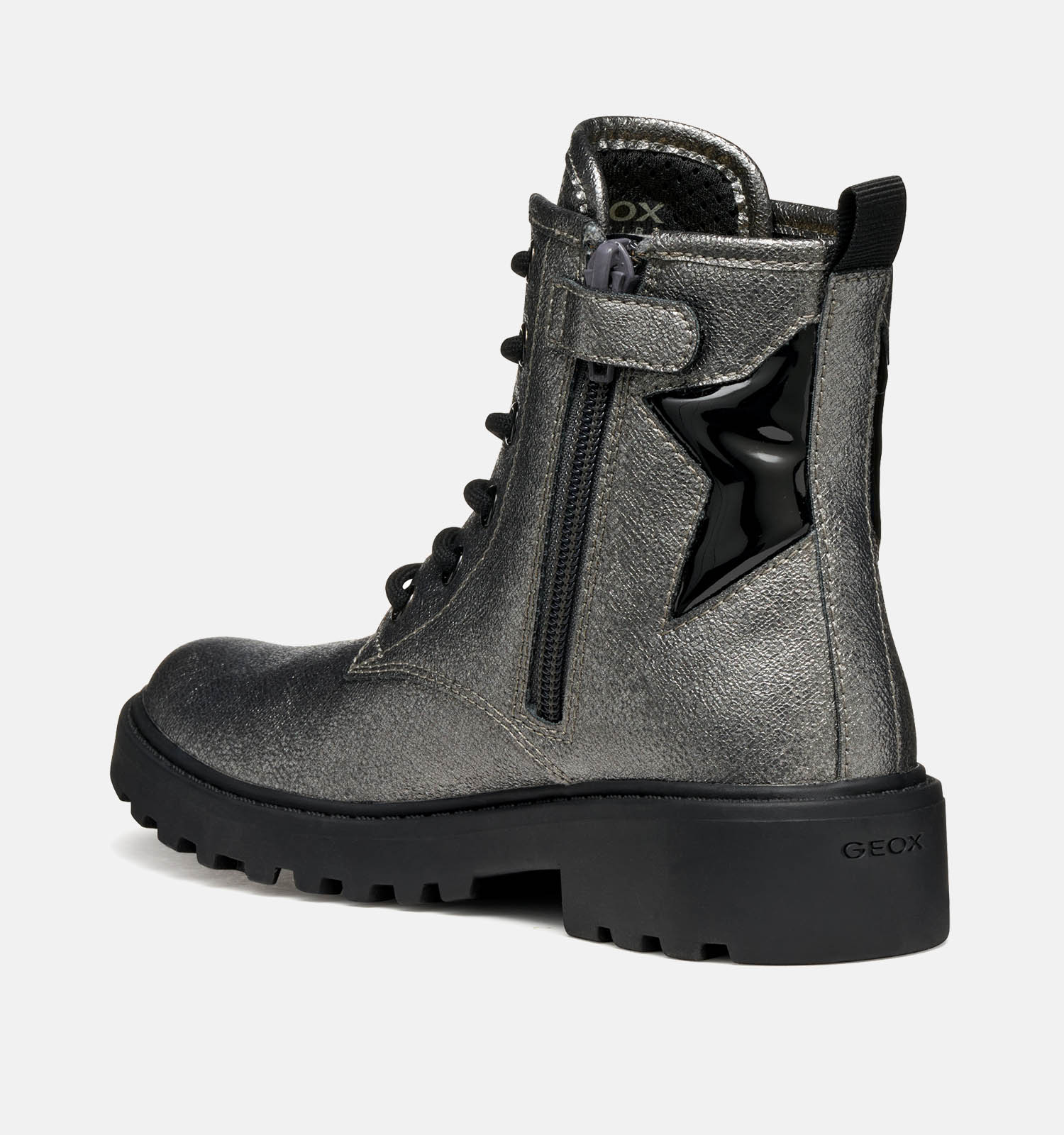 Deze coole hoge schoenen voor meisjes zien er niet alleen keileuk uit, ze hebben ook nog eens een hoog comfortlevel! Deze zilveren meisjeshoge schoenen hebben de gepatenteerde Geox-zolen, waardoor zweet wordt afgevoerd via microgaatjes in de buitenzolen. Zo blijven kindervoeten de hele dag lang droog, zelfs tijdens het rennen, klimmen, spelen en springen! Door het comfort van deze ademende kinderhoge schoenen voor meisjes is geen avontuur te gek meer. Je zal voelen dat de hiel van deze Geox hoge schoenen licht verstevigd is. Dat houdt de voeten waar ze horen, en vermindert de kans op het omslagen van de voeten.