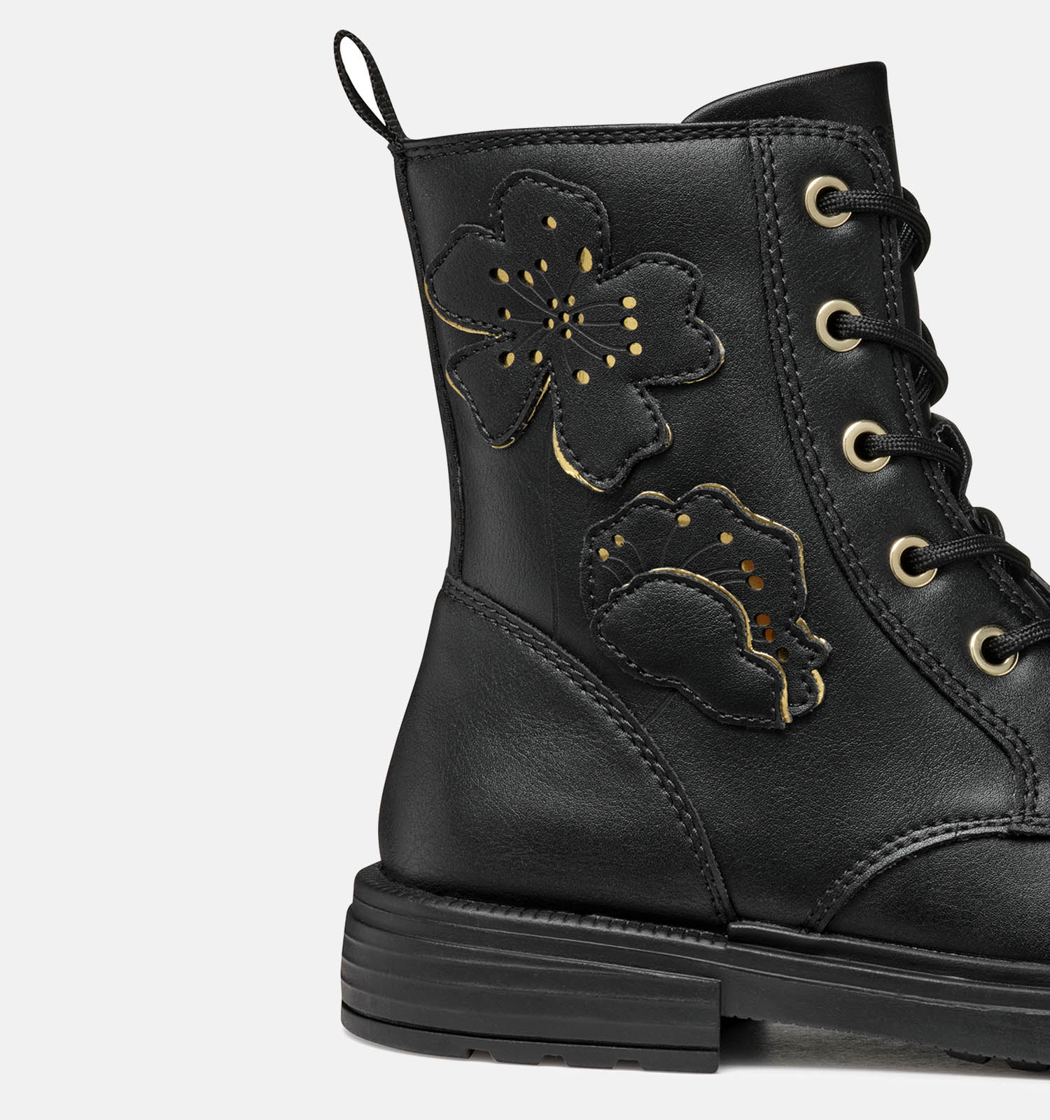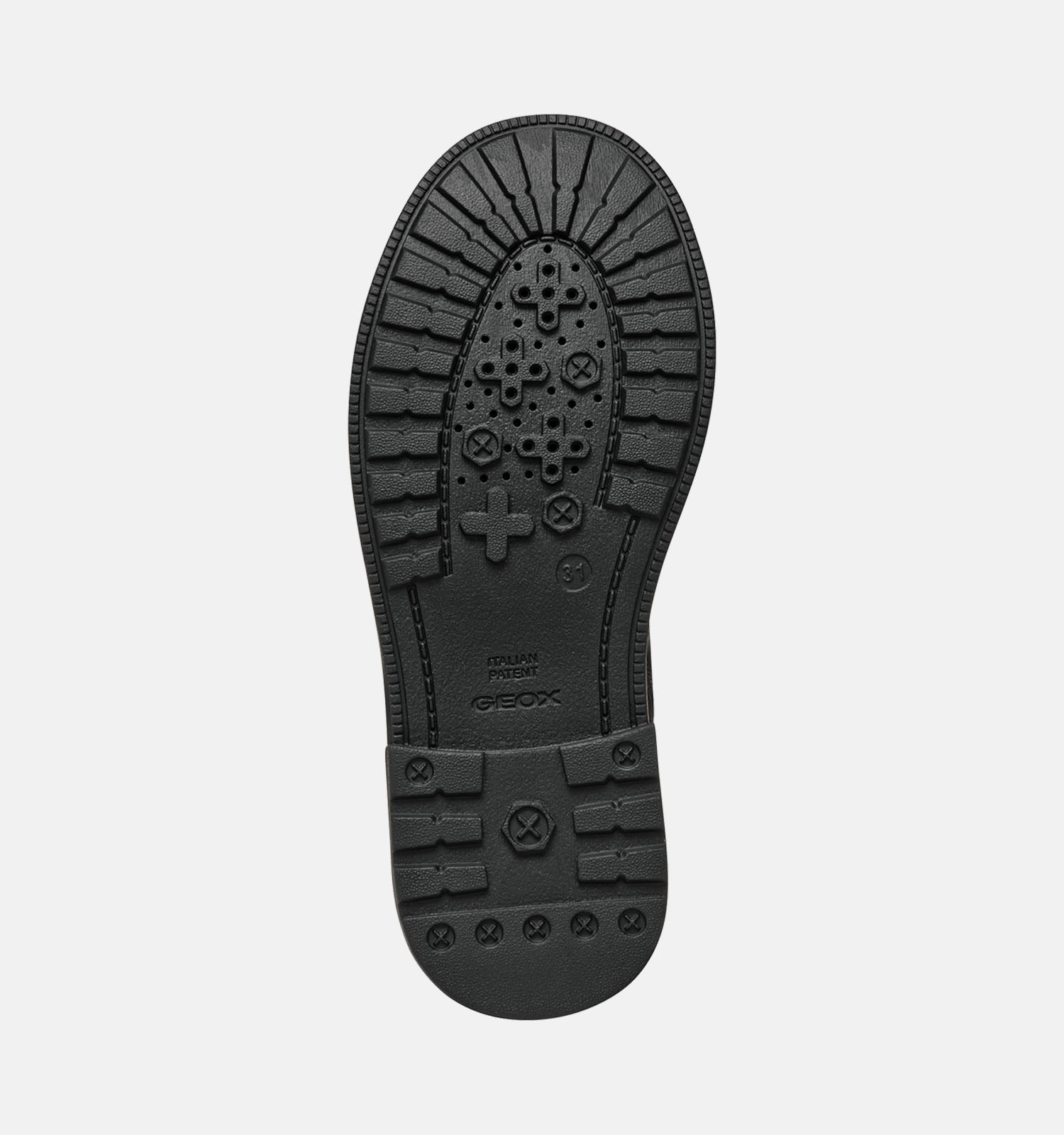 Deze coole hoge schoenen voor meisjes zien er niet alleen keileuk uit, ze hebben ook nog eens een hoog comfortlevel! Deze zwarte meisjeshoge schoenen hebben de gepatenteerde Geox-zolen, waardoor zweet wordt afgevoerd via microgaatjes in de buitenzolen. Zo blijven kindervoeten de hele dag lang droog, zelfs tijdens het rennen, klimmen, spelen en springen! Door het comfort van deze ademende kinderhoge schoenen voor meisjes is geen avontuur te gek meer. Je zal voelen dat de hiel van deze Geox hoge schoenen licht verstevigd is. Dat houdt de voeten waar ze horen, en vermindert de kans op het omslagen van de voeten.