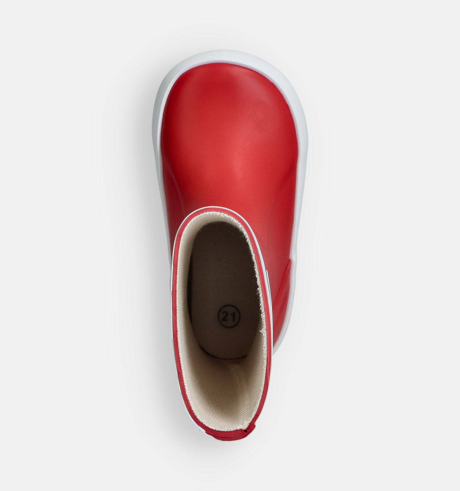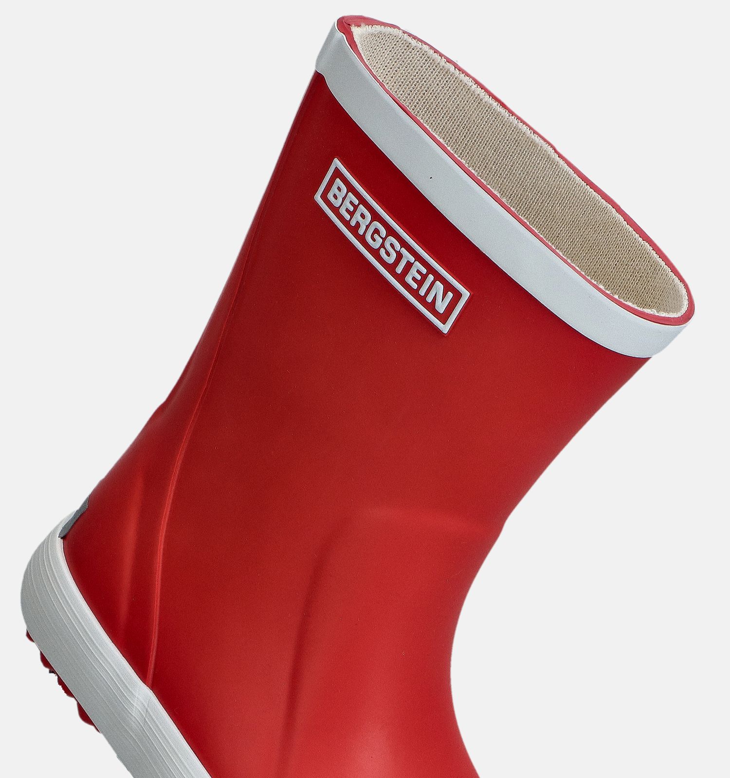 Met deze Bergstein regenlaarzen kunnen jongens, meisjes alle weersomstandigheden aan: van springen in regenplassen en rondrennen in de modder, tot sneeuwmannen maken en wandelen aan (en waarschijnlijk een beetje in) de zee. Deze rubberen laarzen worden je beste vriend! Dit rode model is volledig wind- en waterdicht. Zo blijven jongens, meisjesvoeten warm, comfortabel en droog.