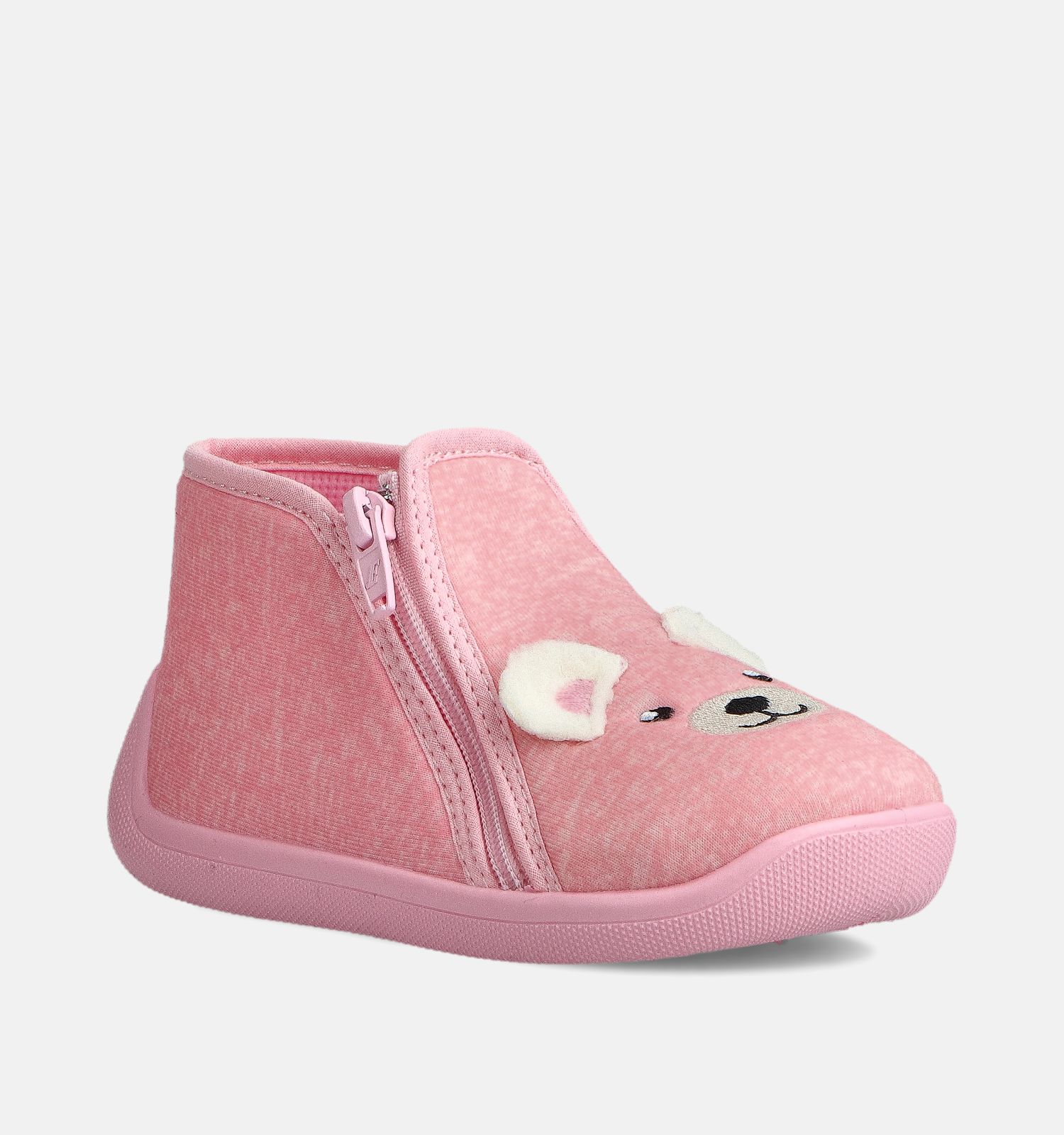 Deze roze meisjespantoffels van Milo & Mila hebben een ritssluiting, zodat meisjes deze makkelijk en snel kunnen aan- en uittrekken.