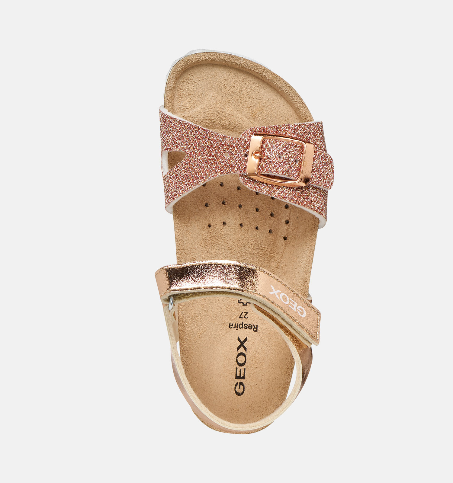 Deze coole sandalen voor meisjes zien er niet alleen keileuk uit, ze hebben ook nog eens een hoog comfortlevel! Deze rose golden meisjessandalen hebben de gepatenteerde Geox-zolen, waardoor zweet wordt afgevoerd via microgaatjes in de buitenzolen. Zo blijven kindervoeten de hele dag lang droog, zelfs tijdens het rennen, klimmen, spelen en springen! Door het comfort van deze ademende kindersandalen voor meisjes is geen avontuur te gek meer. Je zal voelen dat de hiel van deze Geox sandalen licht verstevigd is. Dat houdt de voeten waar ze horen, en vermindert de kans op het omslagen van de voeten.