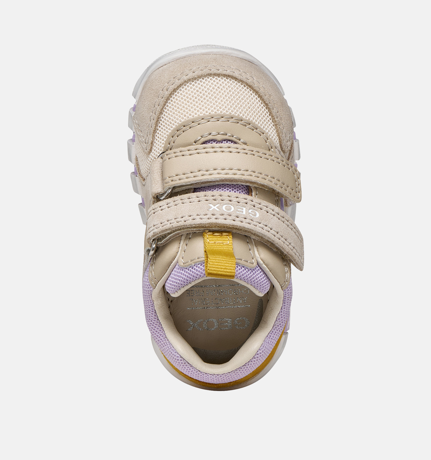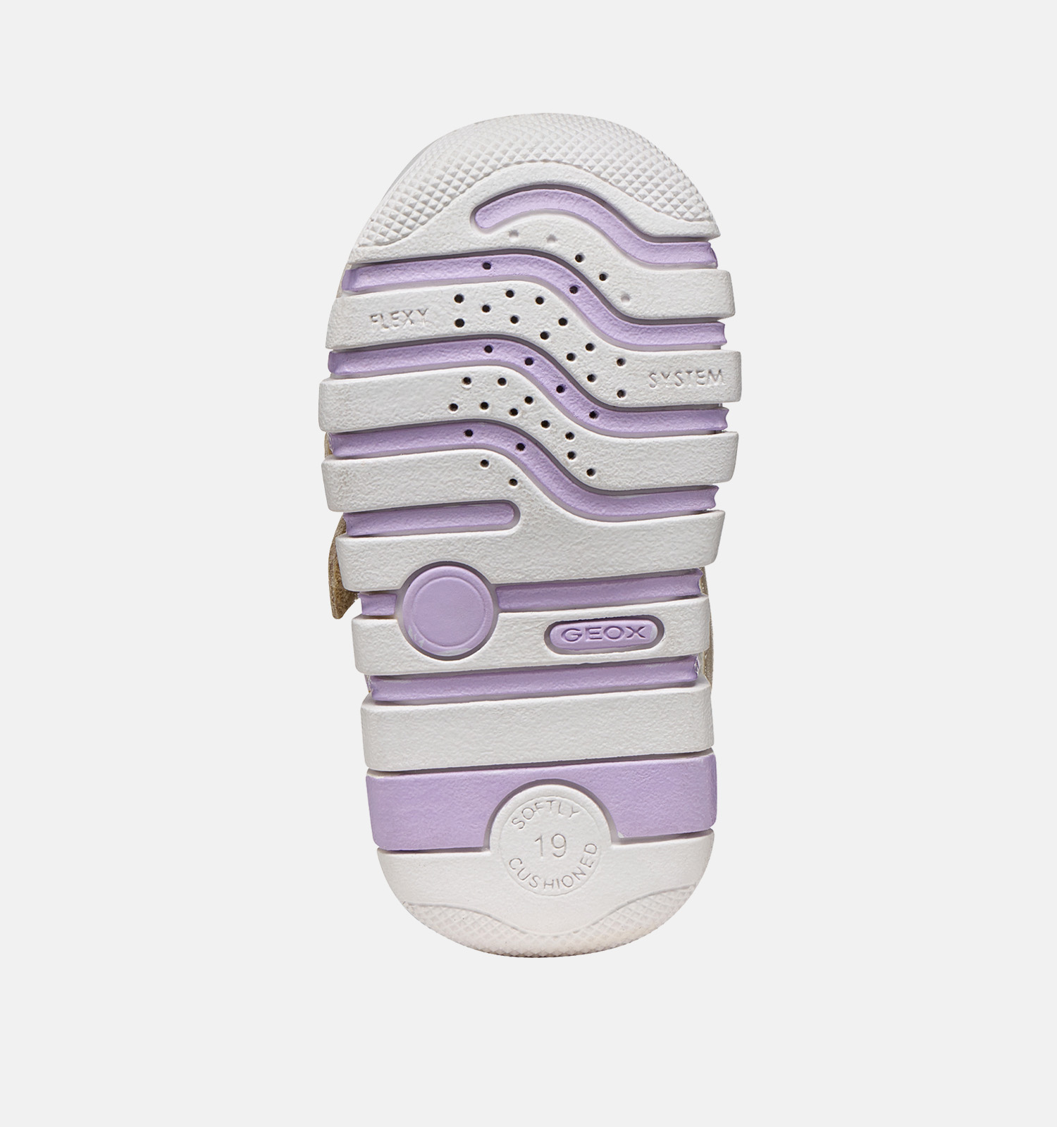 Deze coole eerste stapschoentjes voor meisjes zien er niet alleen keileuk uit, ze hebben ook nog eens een hoog comfortlevel! Deze beige meisjeseerste stapschoentjes hebben de gepatenteerde Geox-zolen, waardoor zweet wordt afgevoerd via microgaatjes in de buitenzolen. Zo blijven kindervoeten de hele dag lang droog, zelfs tijdens het rennen, klimmen, spelen en springen! Door het comfort van deze ademende kindereerste stapschoentjes voor meisjes is geen avontuur te gek meer. Je zal voelen dat de hiel van deze Geox eerste stapschoentjes licht verstevigd is. Dat houdt de voeten waar ze horen, en vermindert de kans op het omslagen van de voeten.