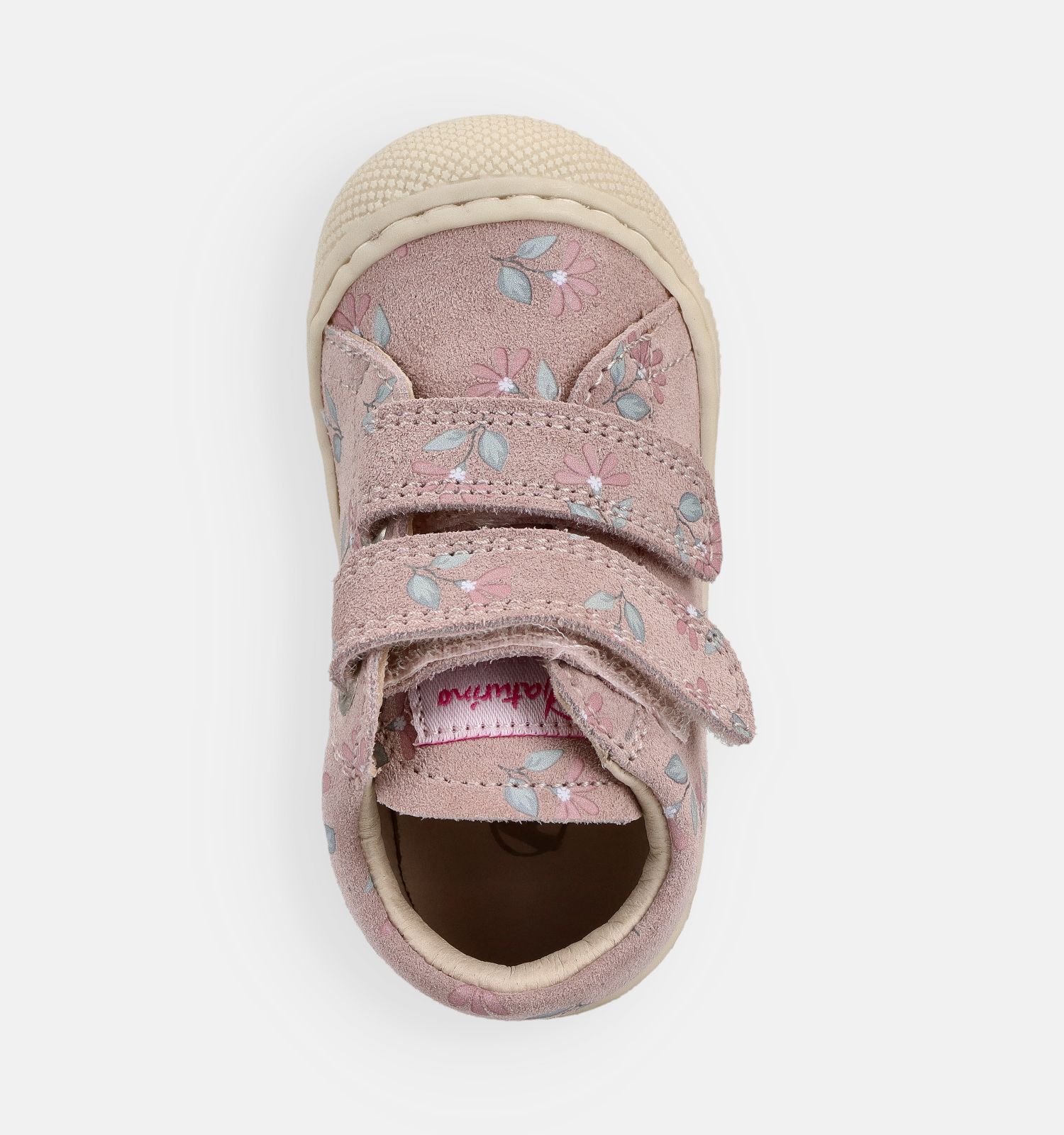 Deze babyschoen van Naturino is vervaardigd uit suède en binnenin afgewerkt in leer.