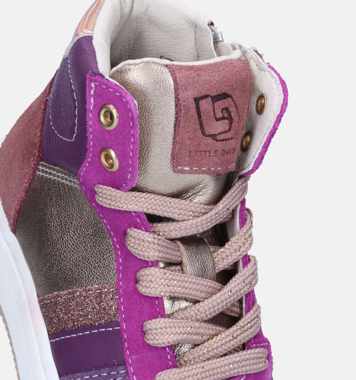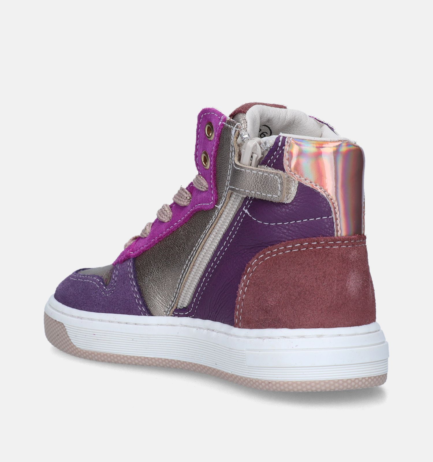De Little David sneakers combineren een atletische en trendy look en zijn vervaardigd uit stevig leer, suède. Binnenin zijn deze hoge sneakers voor meisjes afgewerkt met zacht kunstleer. Deze paarse hoge sneakers zijn voorzien van een rits & vetersluiting.