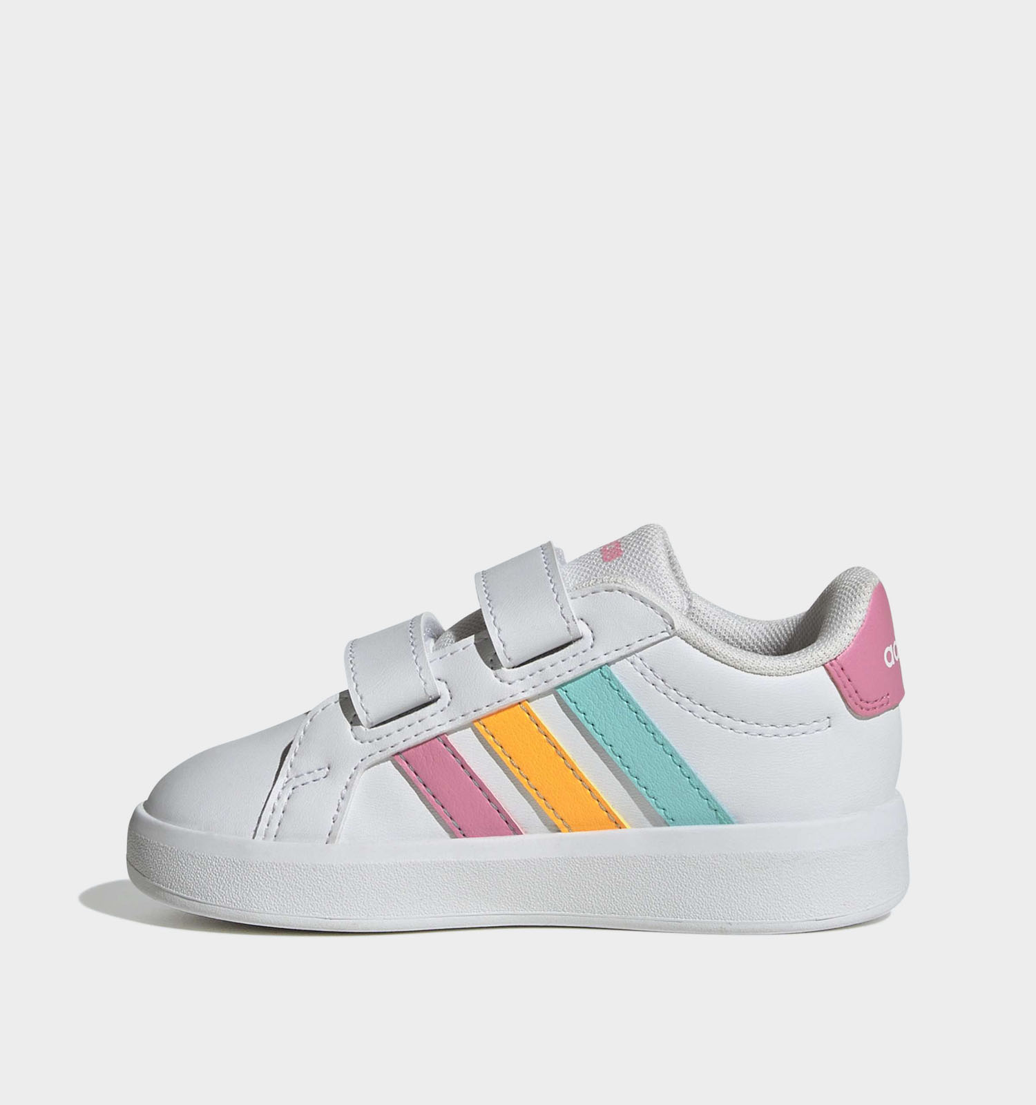 Kinderen zijn dol op adidas. Deze witte sneakers van adidas zijn niet alleen kei cool, ze zijn ook op-en-top comfortabel. De velcrosluiting houdt ze stevig aan de voeten tijdens de zotste avonturen! De hiel van deze adidas sneakers voor meisjes is licht verstevigd. Dat houdt de voeten waar ze horen, en vermindert de kans op het omslagen van de voeten. Deze witte adidas schoenen zijn de perfecte keuze voor actieve en sportieve kids!