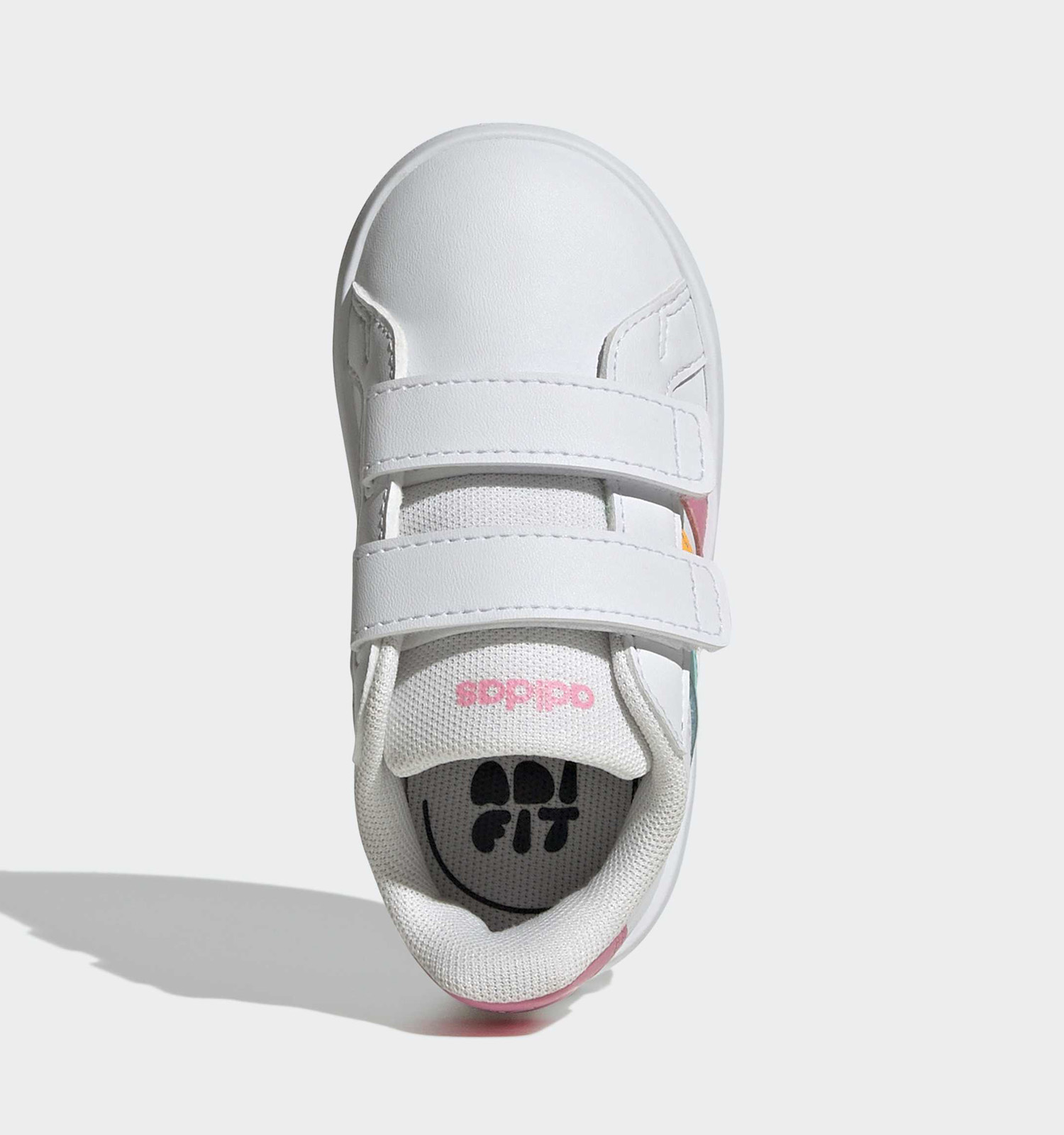 Het is belangrijk dat deze meisjessneakers van sportmerk adidas goed aanpassen: kies dus de schoenmaat waar de tenen nog genoeg beweegruimte hebben. Dit check je het best door te voelen ter hoogte van de schoenneus als het kind de adidas sneakers aanheeft.