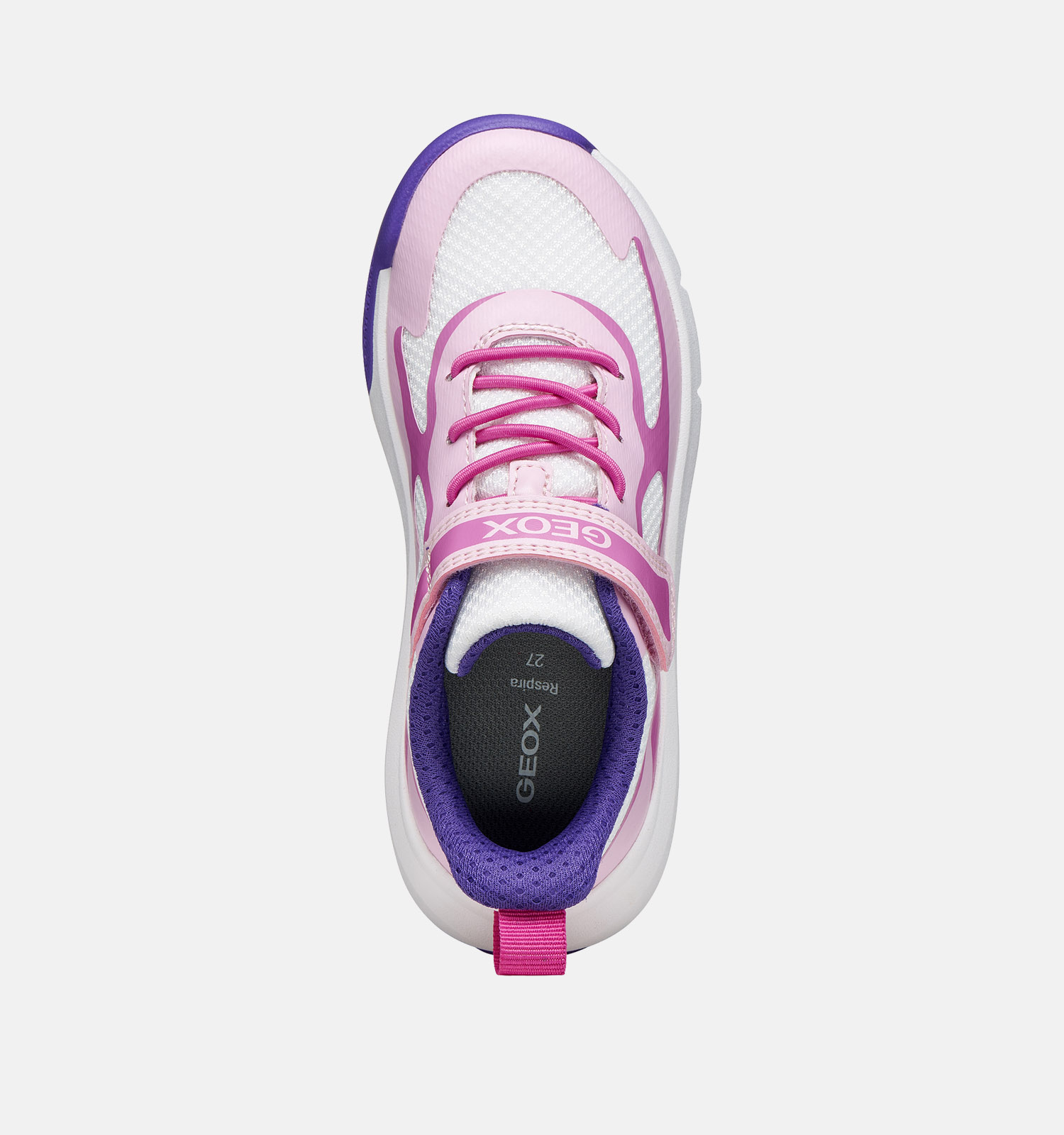 Deze coole sneakers voor meisjes zien er niet alleen keileuk uit, ze hebben ook nog eens een hoog comfortlevel! Deze roze meisjessneakers hebben de gepatenteerde Geox-zolen, waardoor zweet wordt afgevoerd via microgaatjes in de buitenzolen. Zo blijven kindervoeten de hele dag lang droog, zelfs tijdens het rennen, klimmen, spelen en springen! Door het comfort van deze ademende kindersneakers voor meisjes is geen avontuur te gek meer. Je zal voelen dat de hiel van deze Geox sneakers licht verstevigd is. Dat houdt de voeten waar ze horen, en vermindert de kans op het omslagen van de voeten.