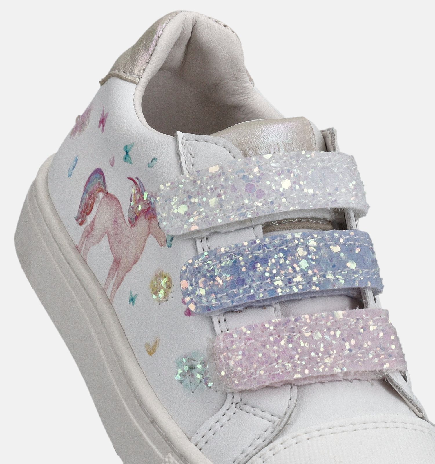 Deze Little David sneakers hebben een stevige velcrosluiting. Dat houdt deze witte meisjessneakers goed aan de voeten tijdens het stappen, rennen, springen en sporten! De semi-soepele en slijtvaste zolen laten de voeten bovendien mooi afrollen tijdens het wandelen. Dat is belangrijk voor stabiliteit en evenwicht, maar zorgt er ook voor dat meisjes minder snel vermoeide voeten zullen hebben.